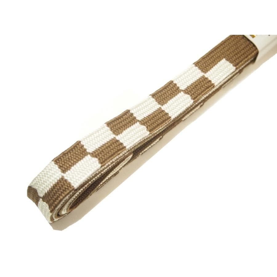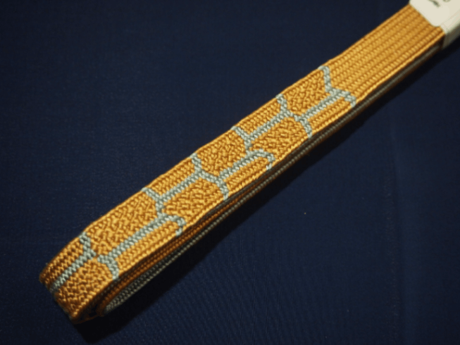 ・正絹帯締め(平組)「黄土色の地にブルーグレー色の亀甲模様」