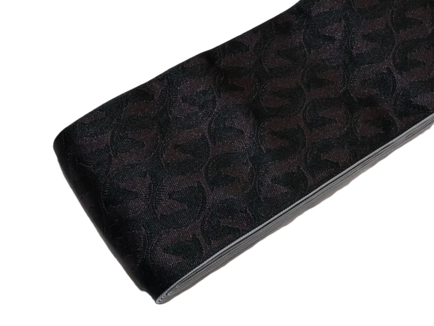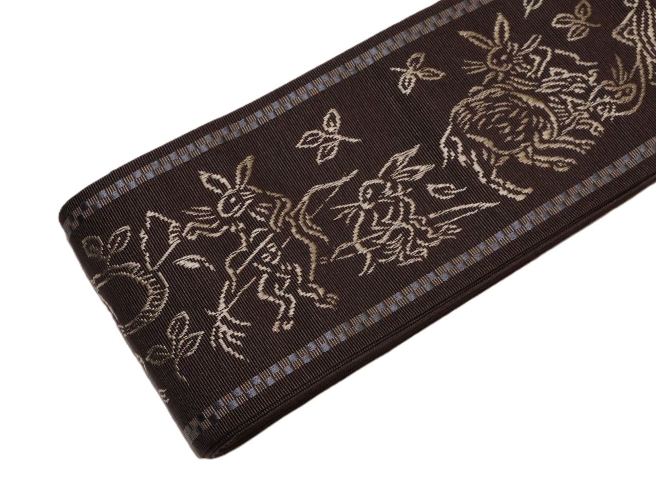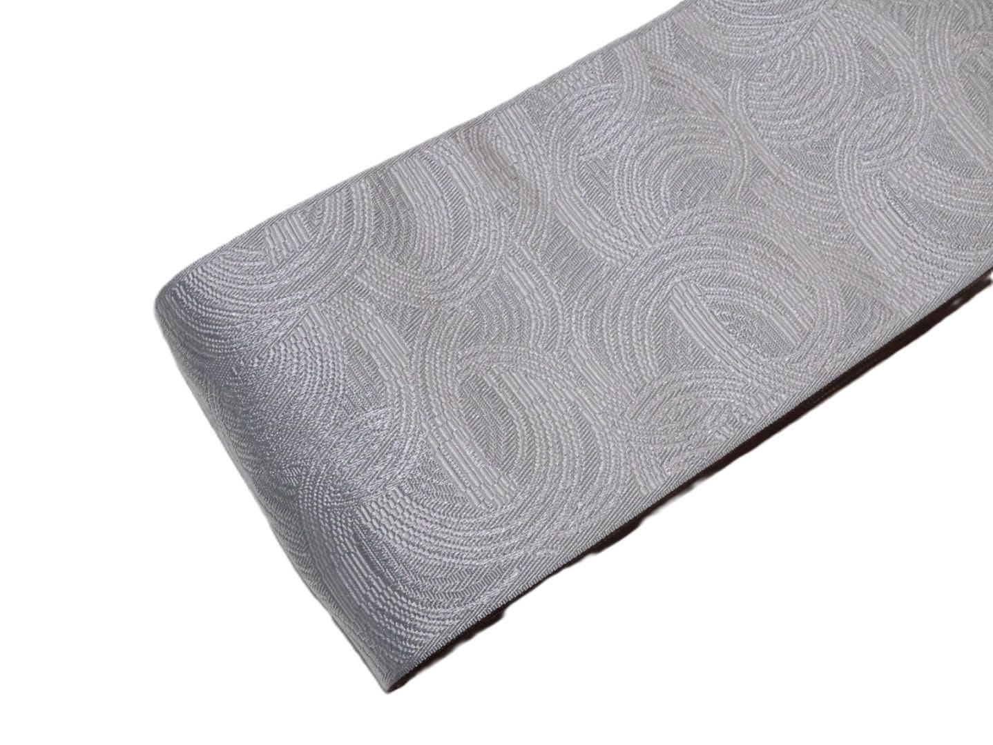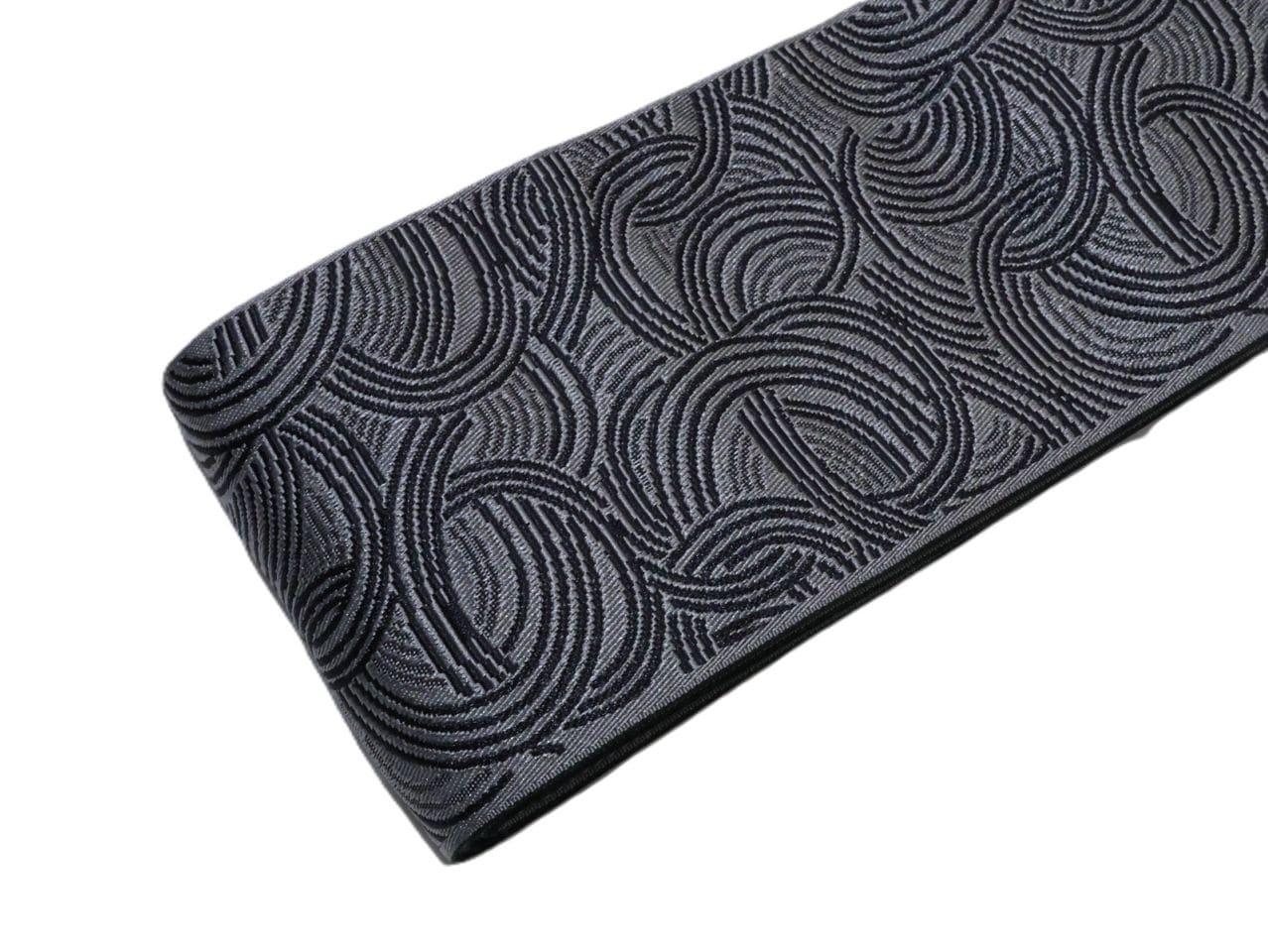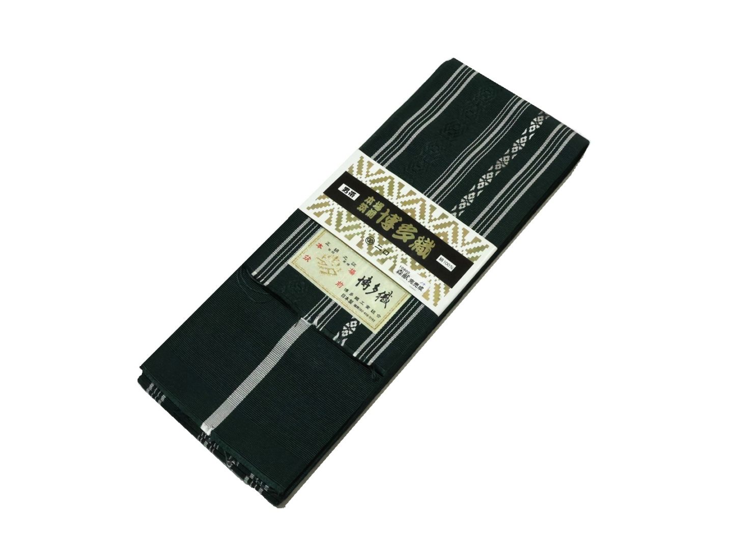絹交織博多織半幅帯「青紺色の地にグレー色の麻の葉模様と深緑色ライン」