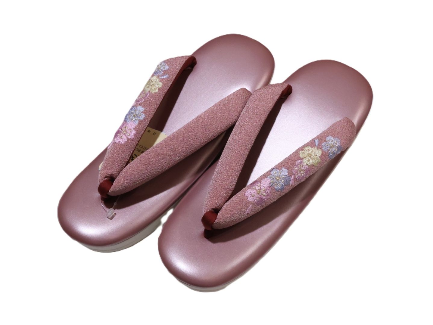 つま皮付き雨用ウレタン草履「ローズ色の台にローズ色の鼻緒」Mサイズ