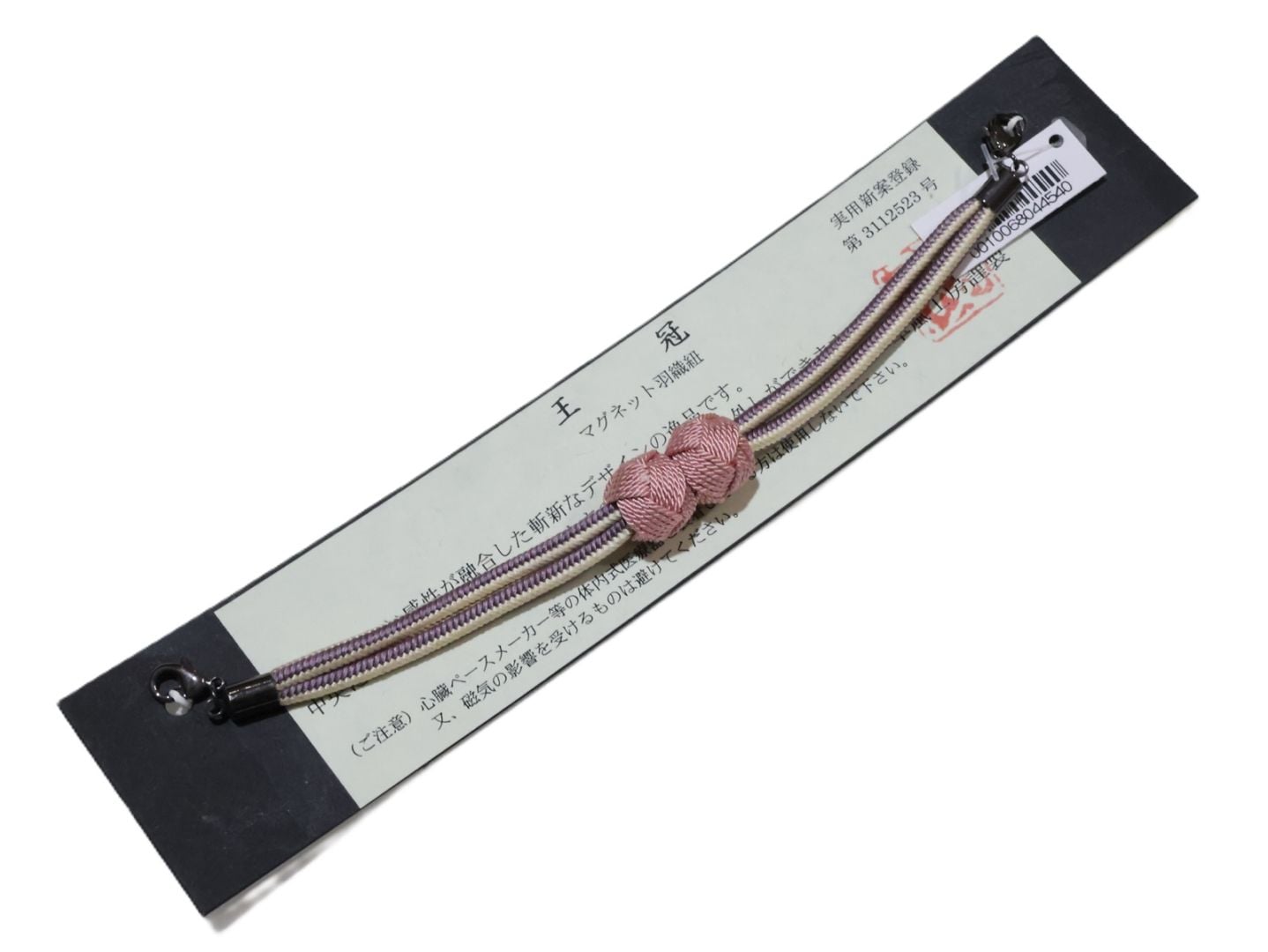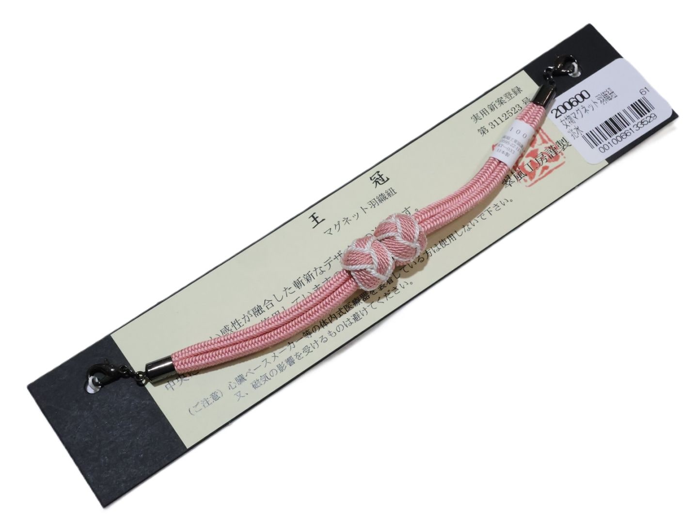 マグネットタイプ羽織紐「ピンク色の組み紐にピンク色(白色の縁取り)の小田巻」