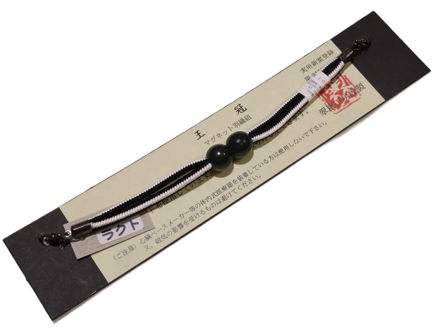 マグネットタイプ羽織紐「グレー色とアイボリー色の組紐にブルーグレー色のラクト玉」
