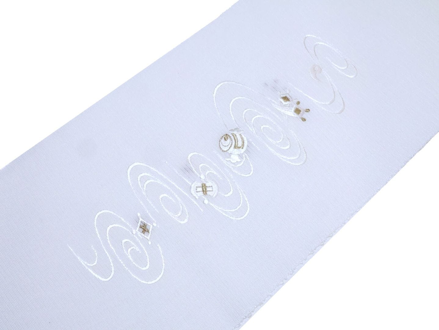 ・夏物正絹刺繍半衿「白色の地に白色と金色の観世水と宝尽くしの刺繍」