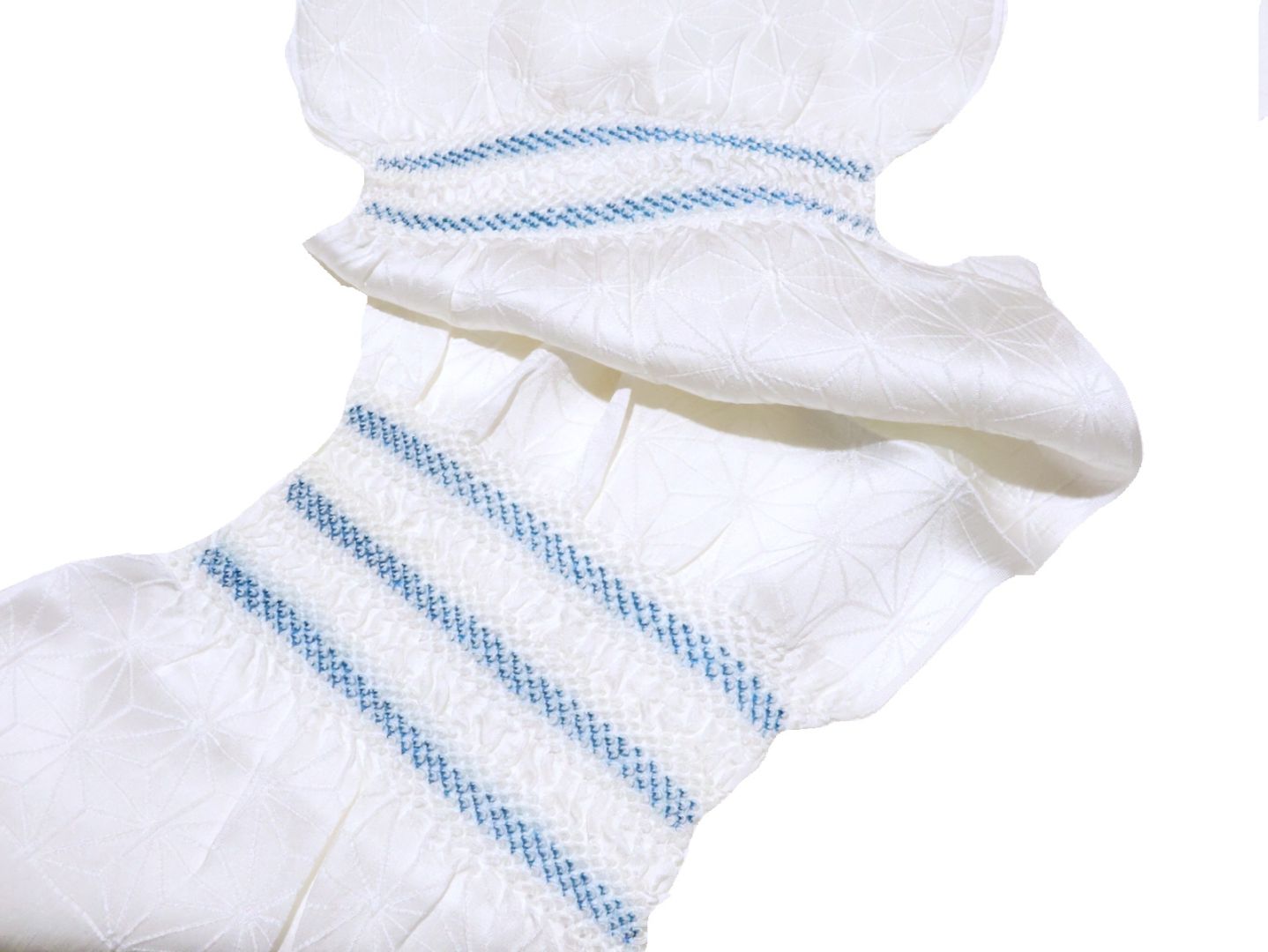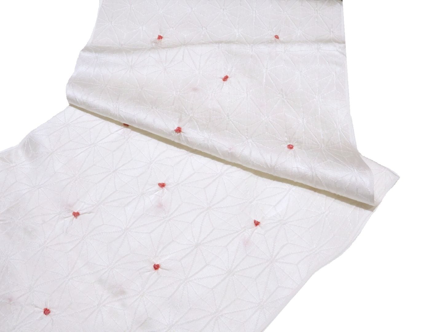 ・正絹帯揚げ「白地に濃いピンク色の小帽子(麻の葉の地模様)」