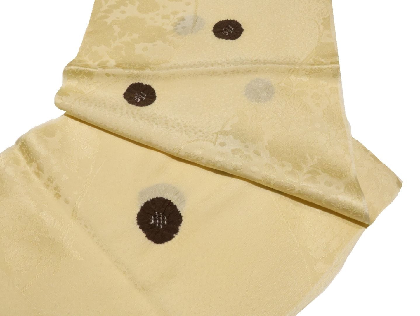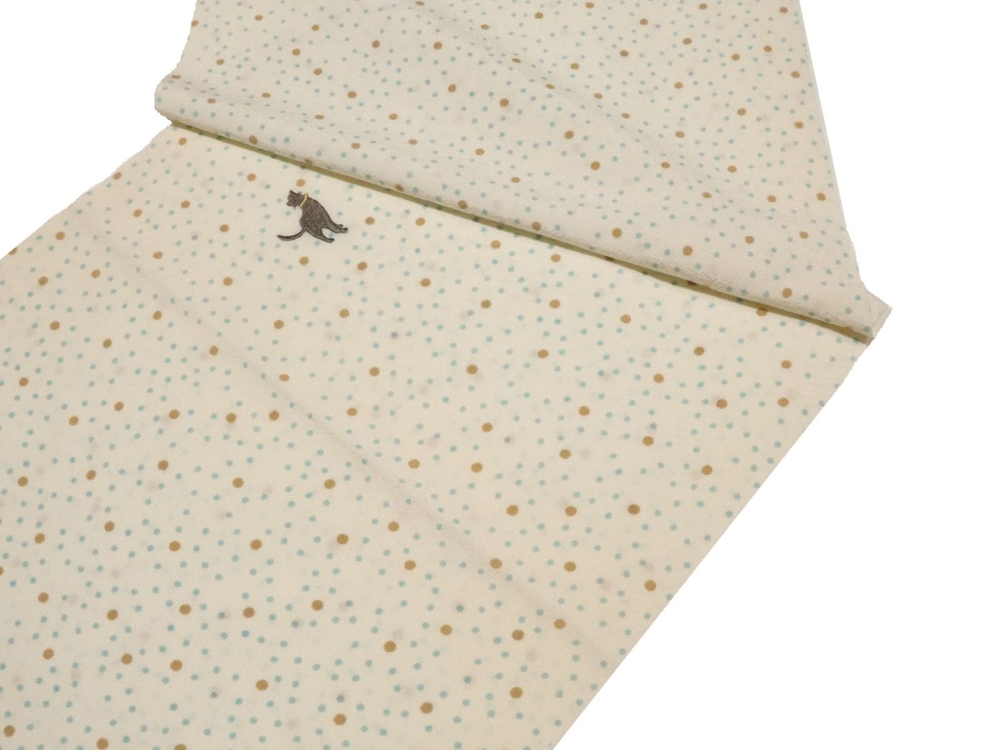・正絹帯揚げ「アイボリー色の地にベージュ色のドットとネコの刺繍」