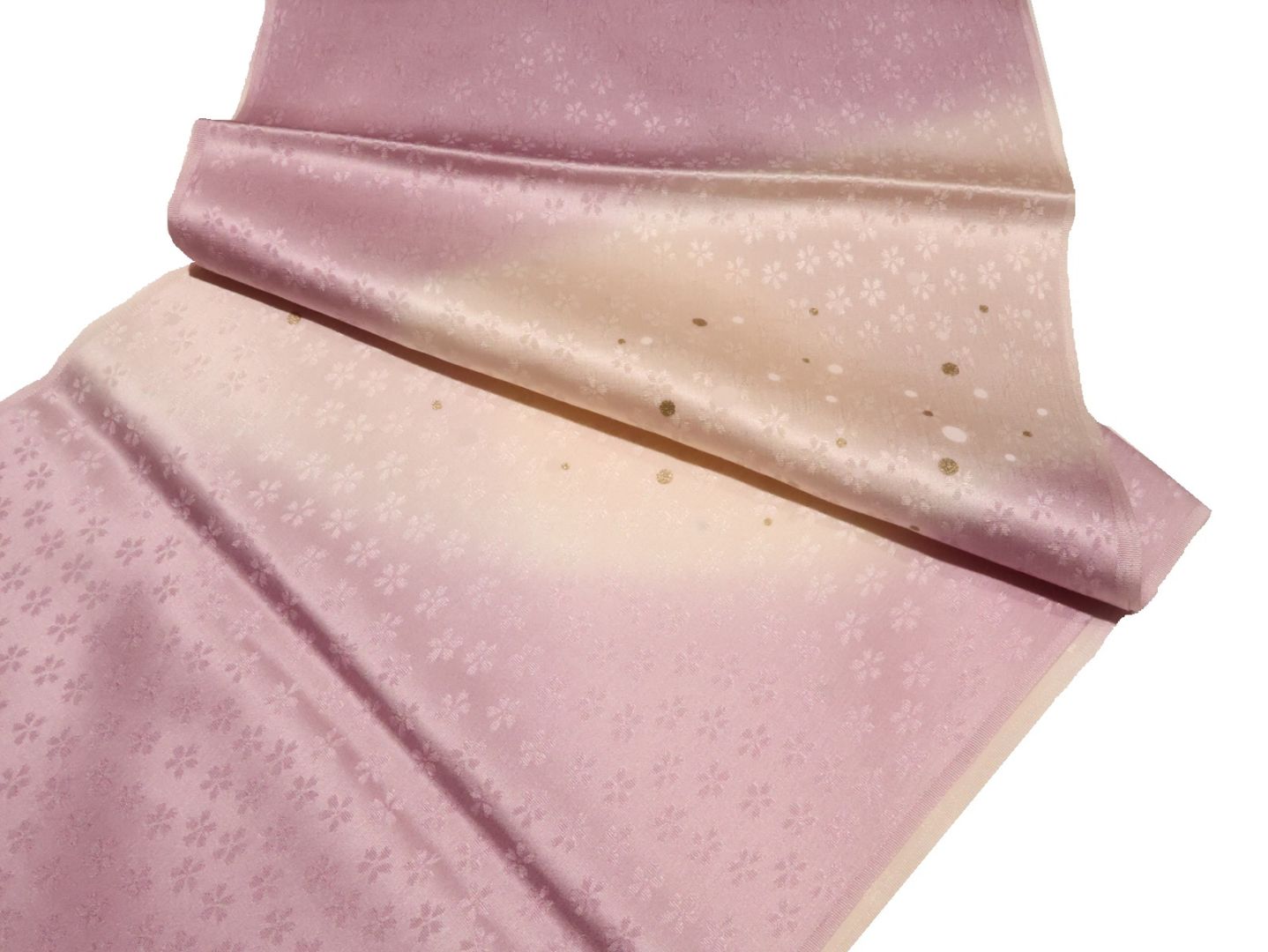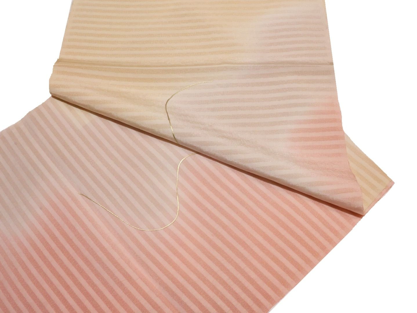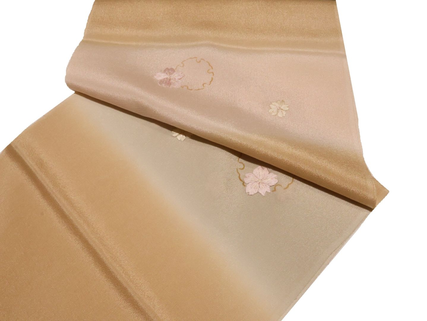 ・正絹帯揚げ「ピンク色とクリームベージュのぼかし(金の刺繍入り)」