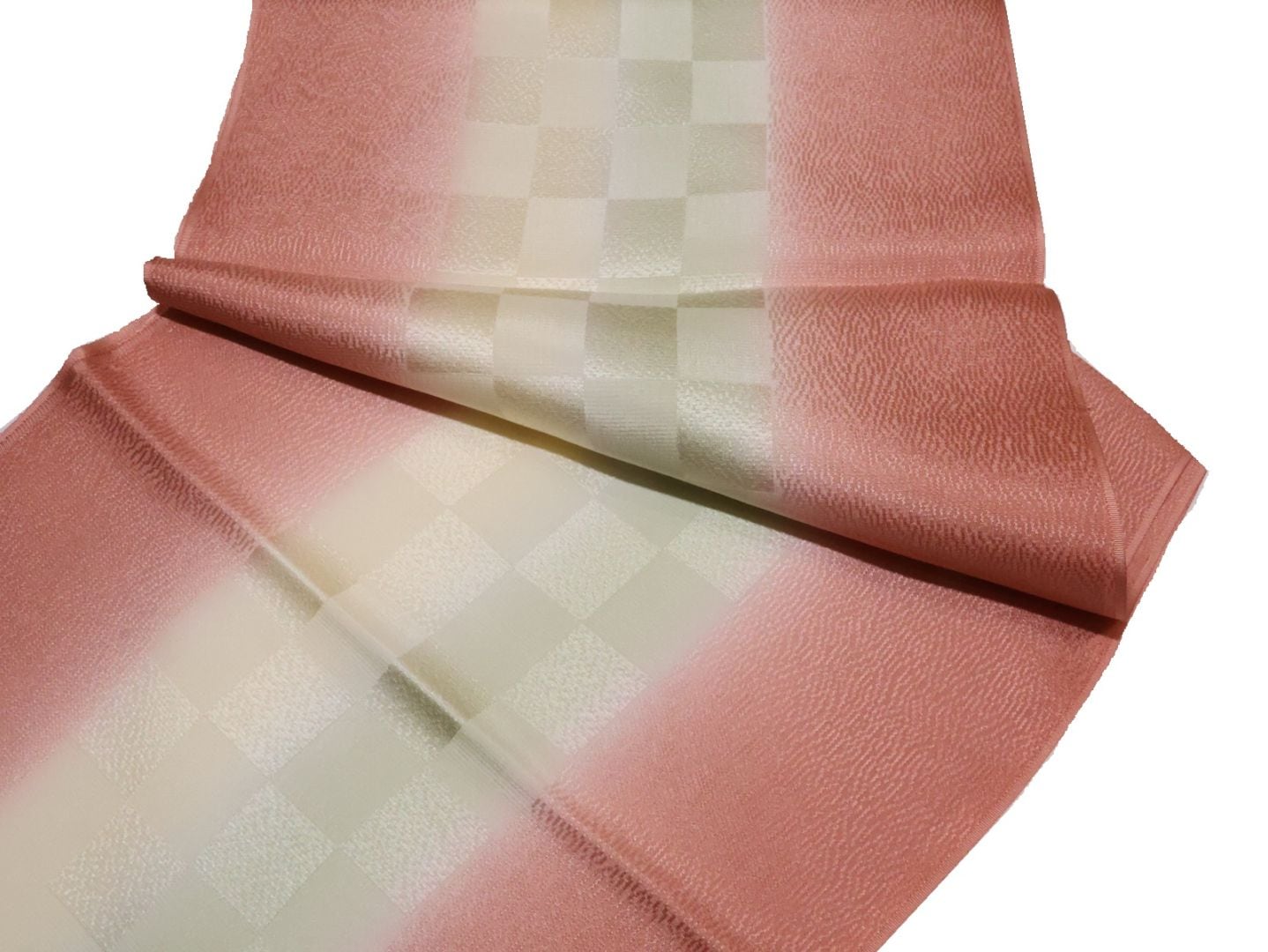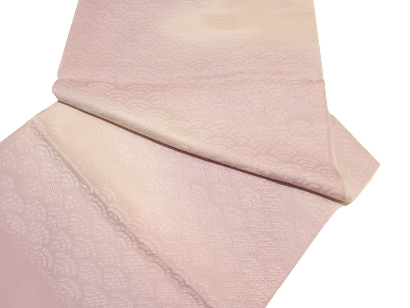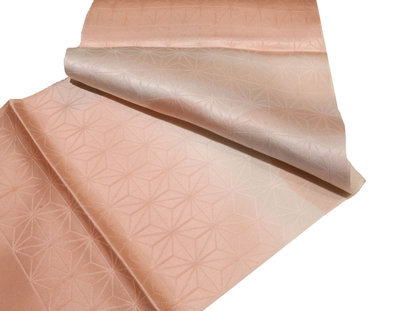 ・正絹帯揚げ「ピンクベージュ色の地にぼかしと麻の葉の地模様」