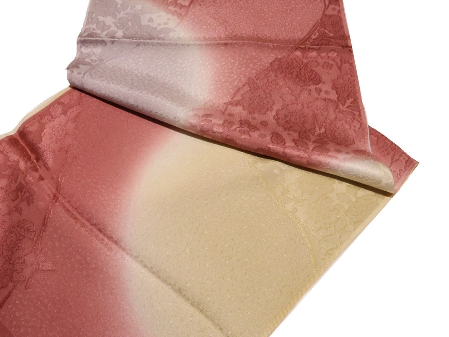 ・正絹帯揚げ「ローズピンク色の地にフジ色と薄ベージュ色のぼかし」