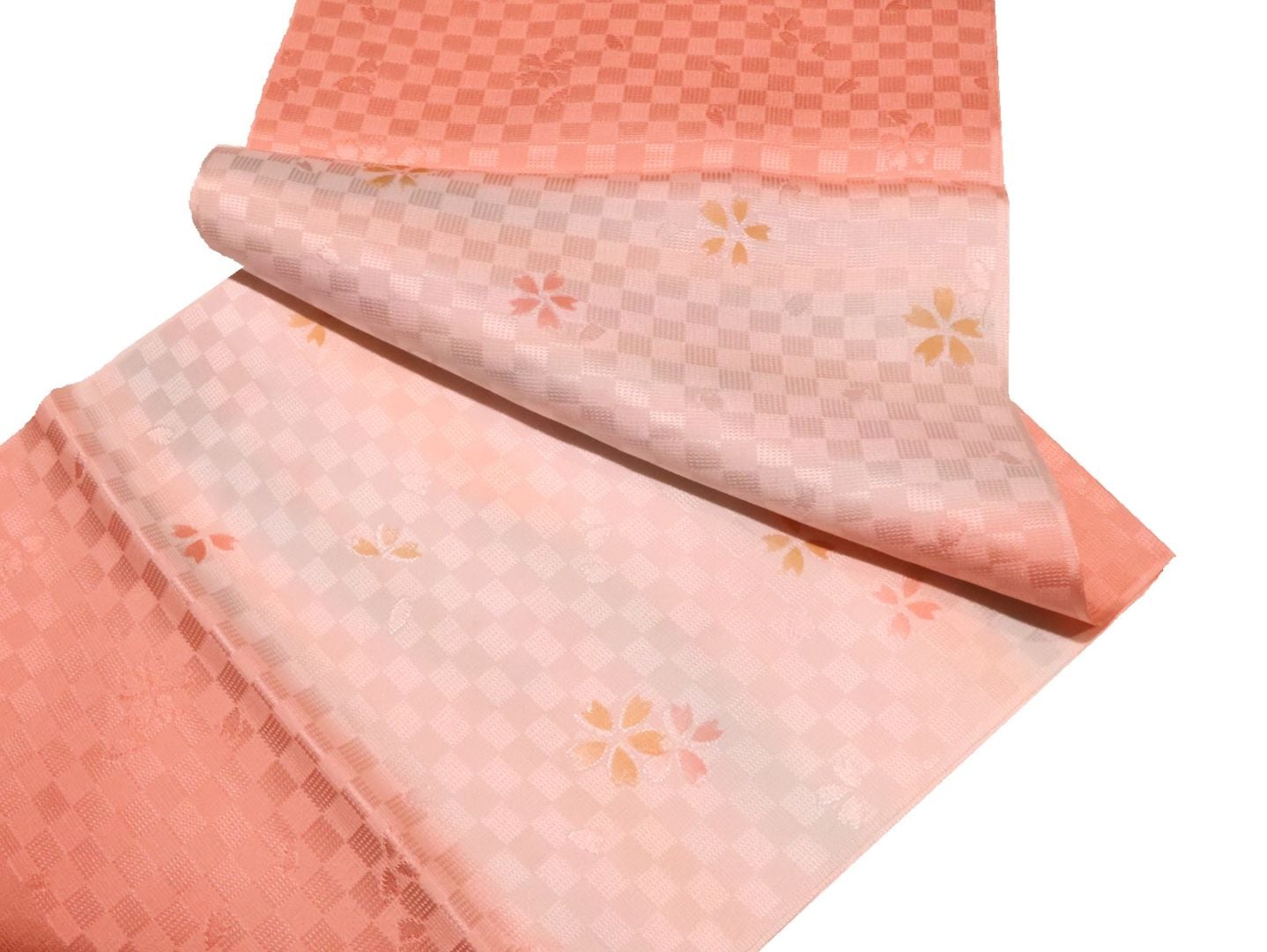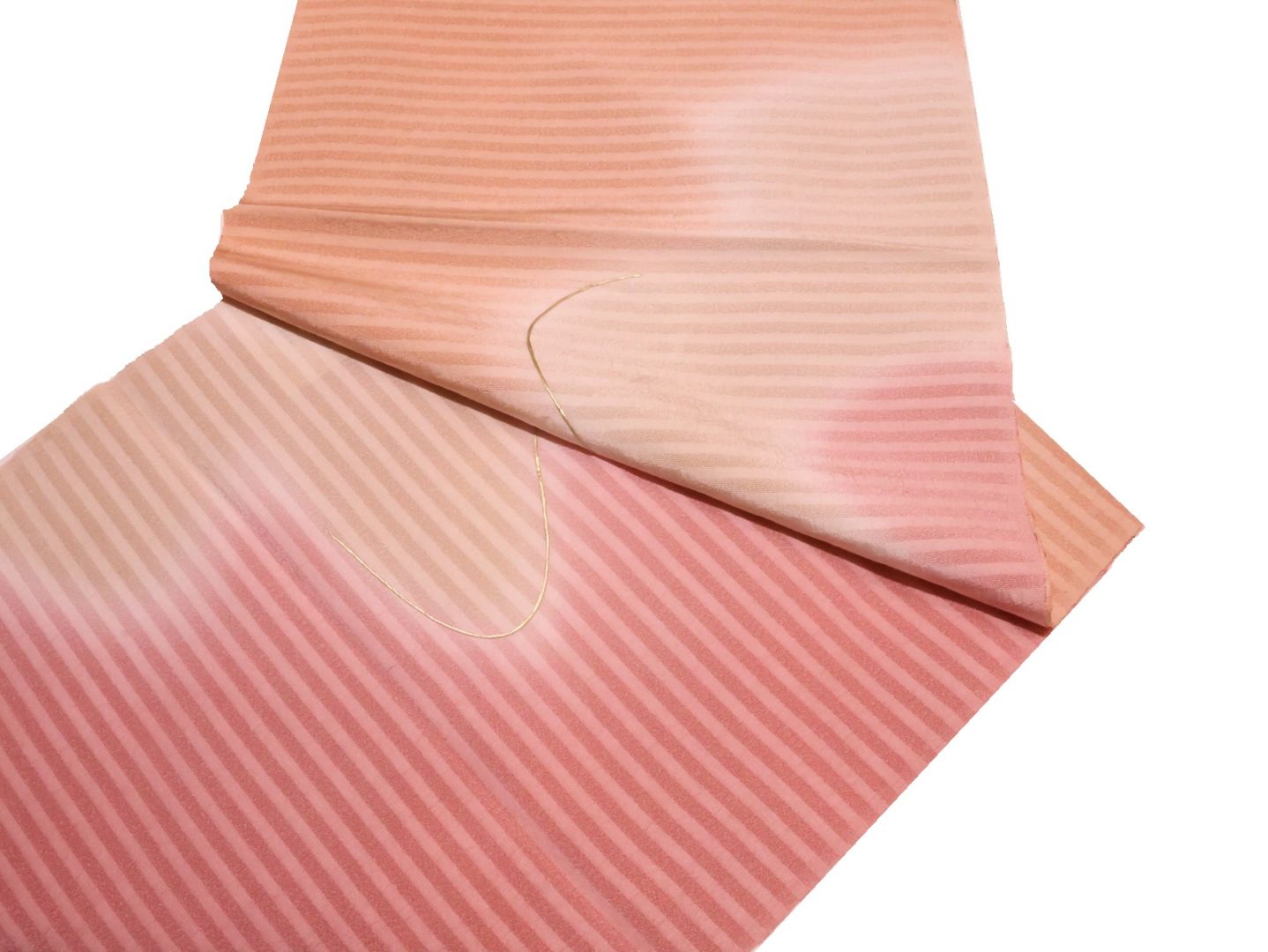 ・正絹帯揚げ「ピンク色とサーモンピンク色のぼかし(金の刺繍入り)」