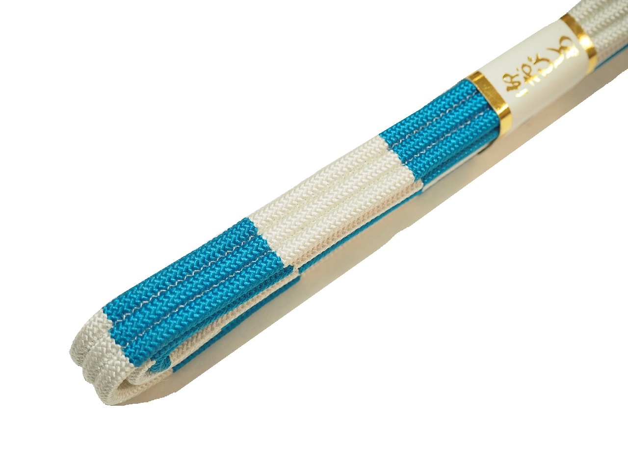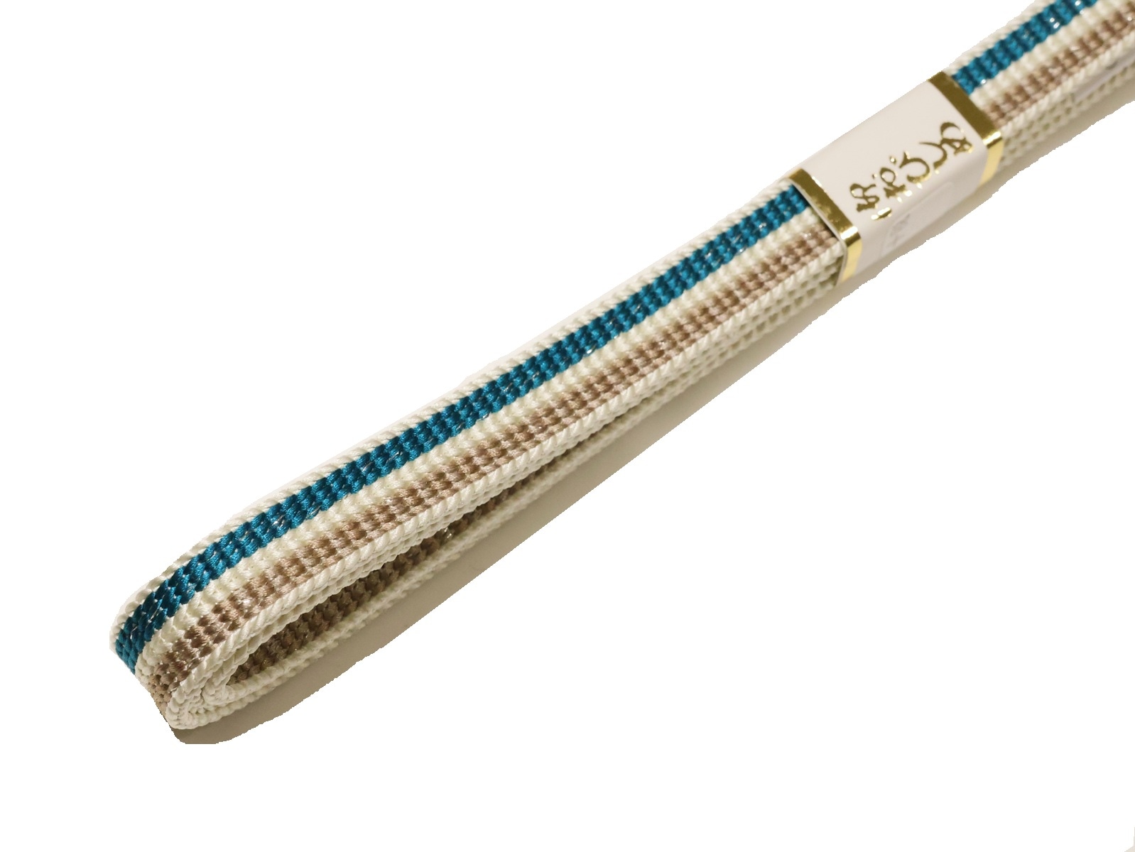 ・正絹帯締め(平組)「ターコイズ色と薄茶色(白色の縁取り)」