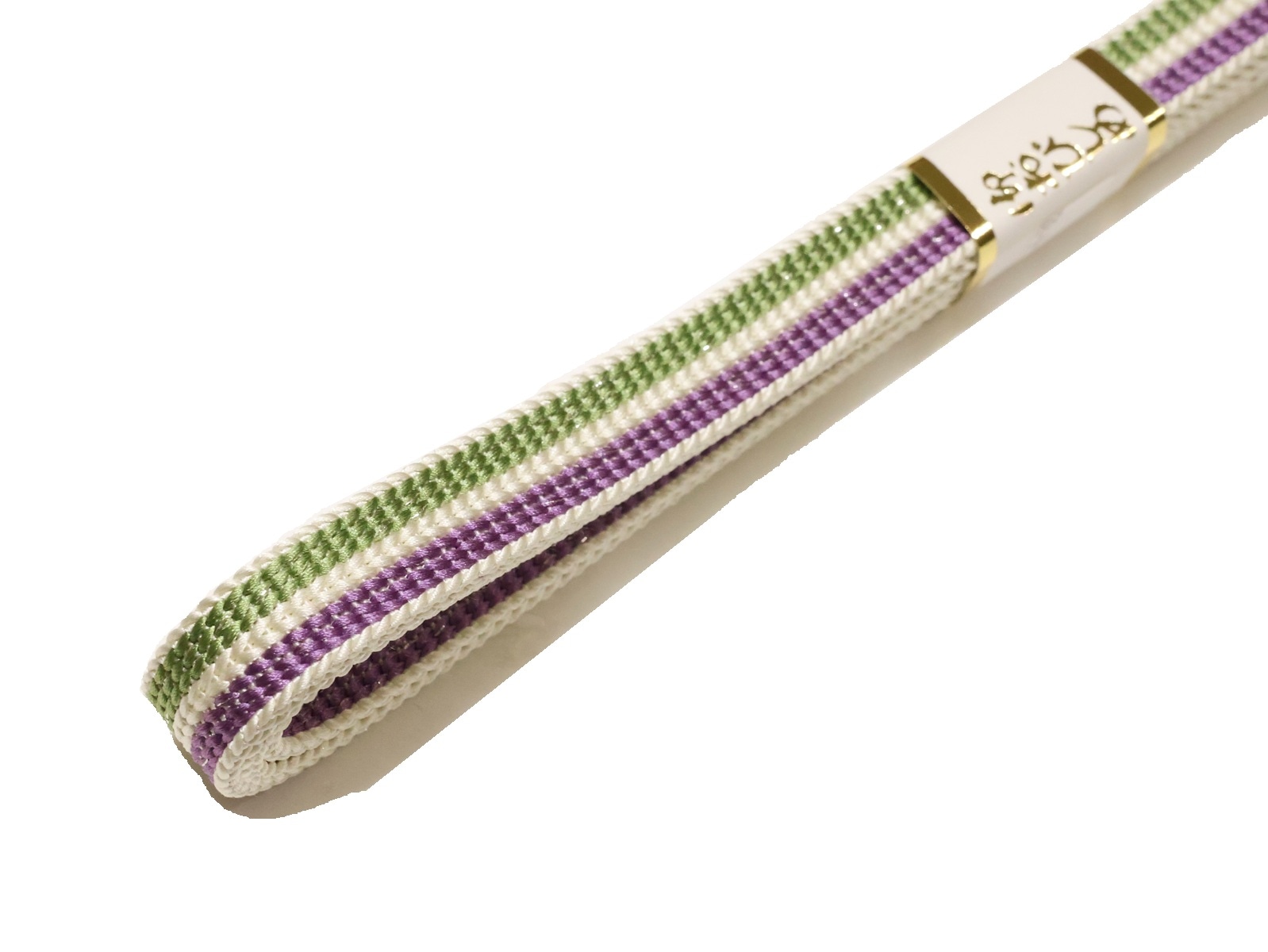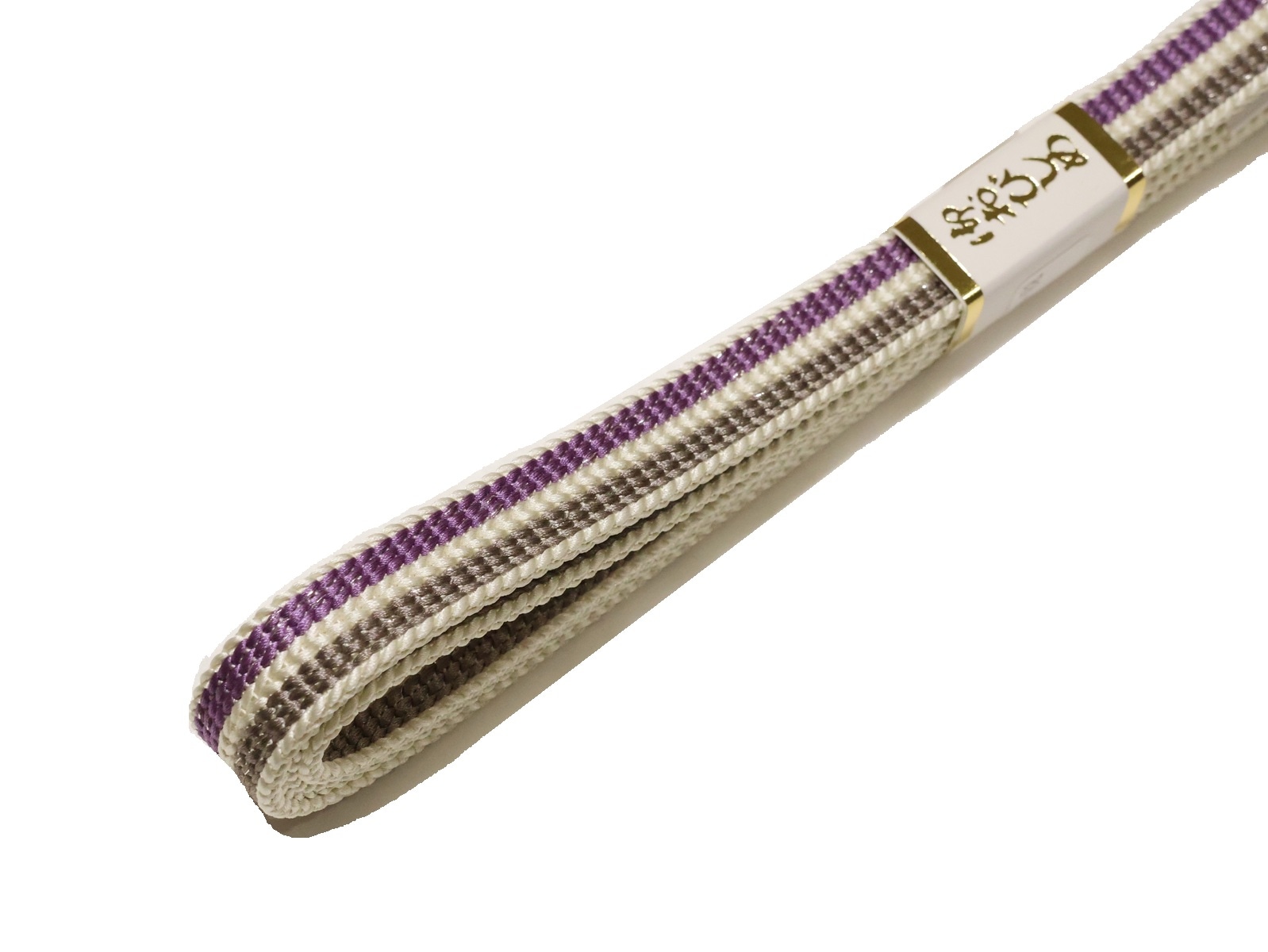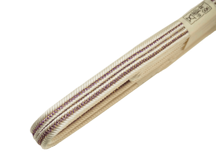 ・正絹帯締め(変わり平組)「白色の地に紫色と薄茶色の縁取り」