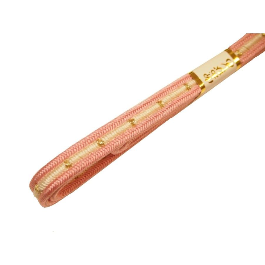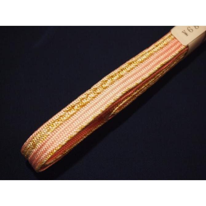 ・長尺正絹帯締め(平組)「ピンク色の地にぼかしと金色の模様」