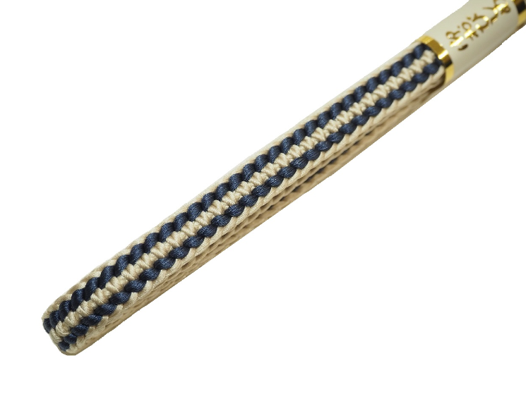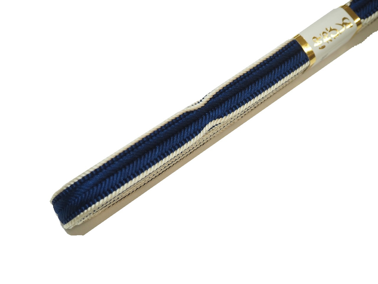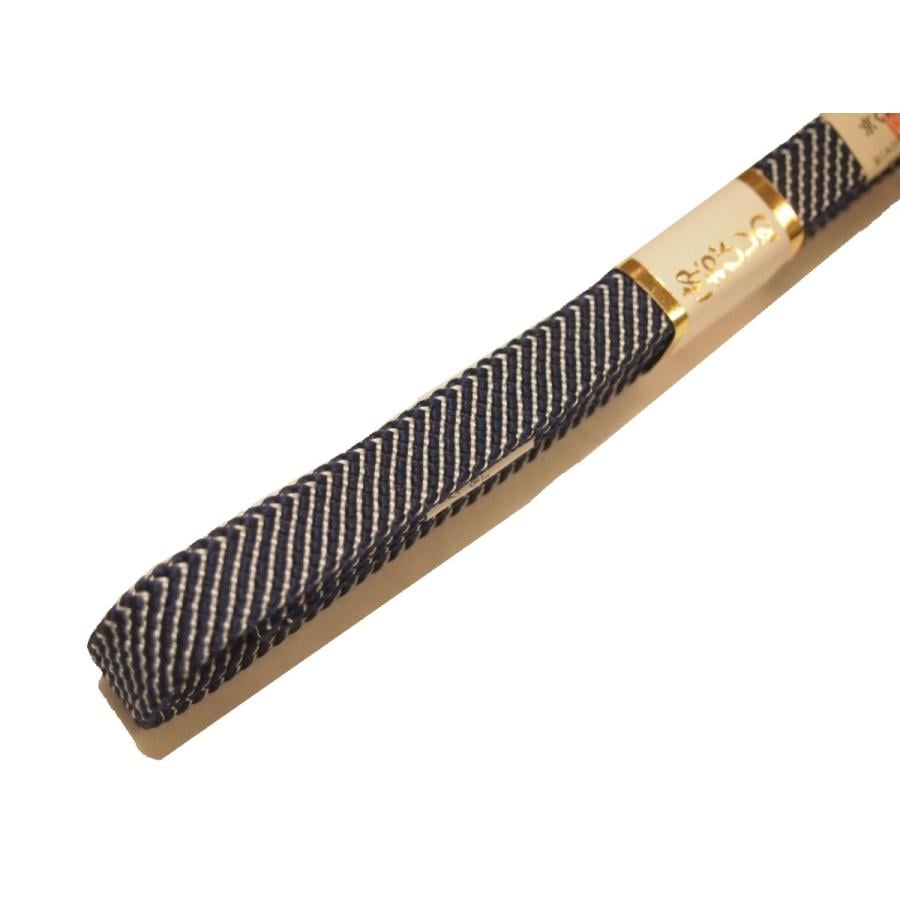 ・長尺正絹帯締め(平組)「紺色の地に薄グレー色の斜めライン」