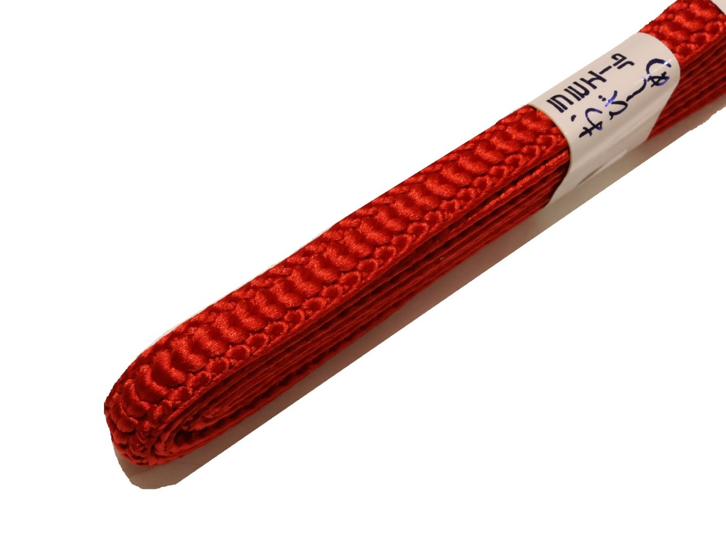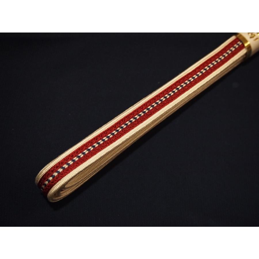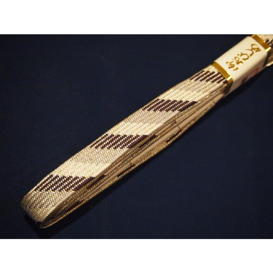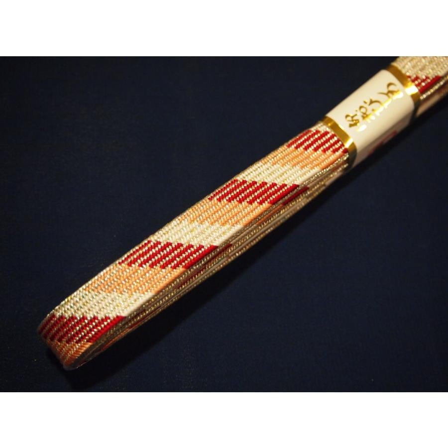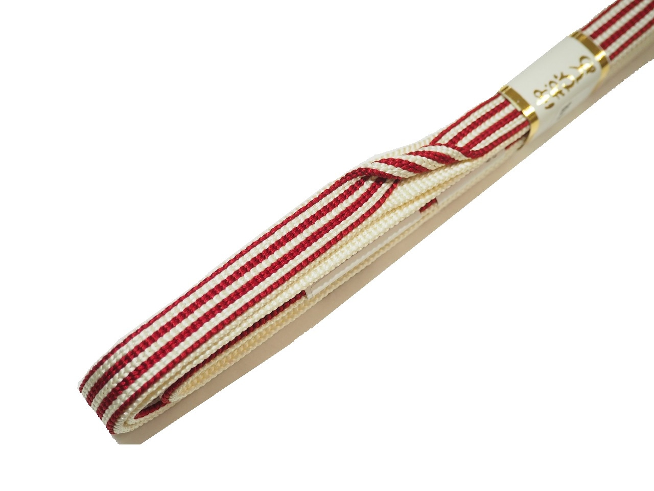・長尺正絹帯締め(変わり平組)「アイボリー色と赤色の縞模様」