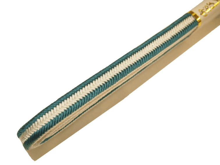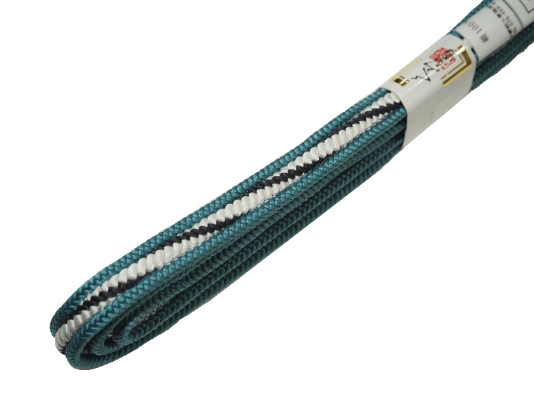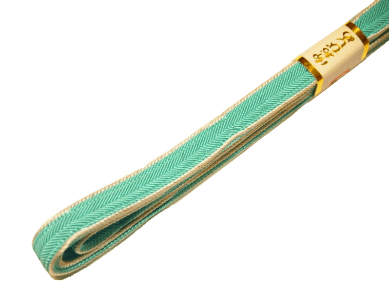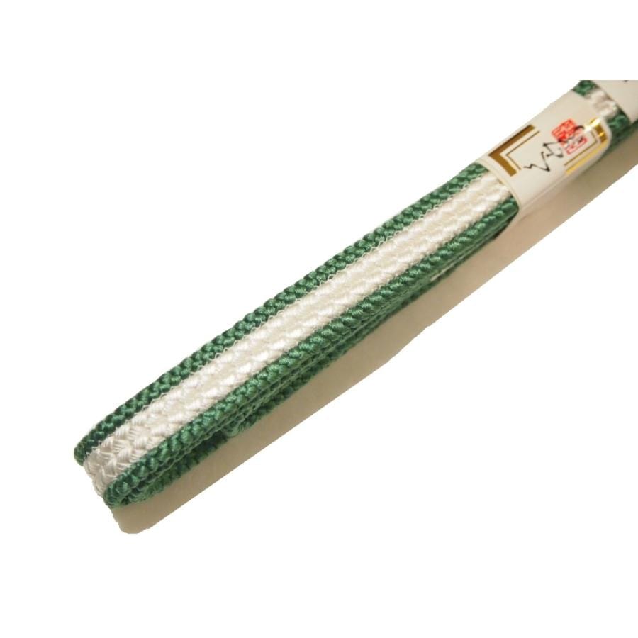 ・長尺正絹帯締め(畝打組)「灰青緑色の地に中央に白色と墨色」