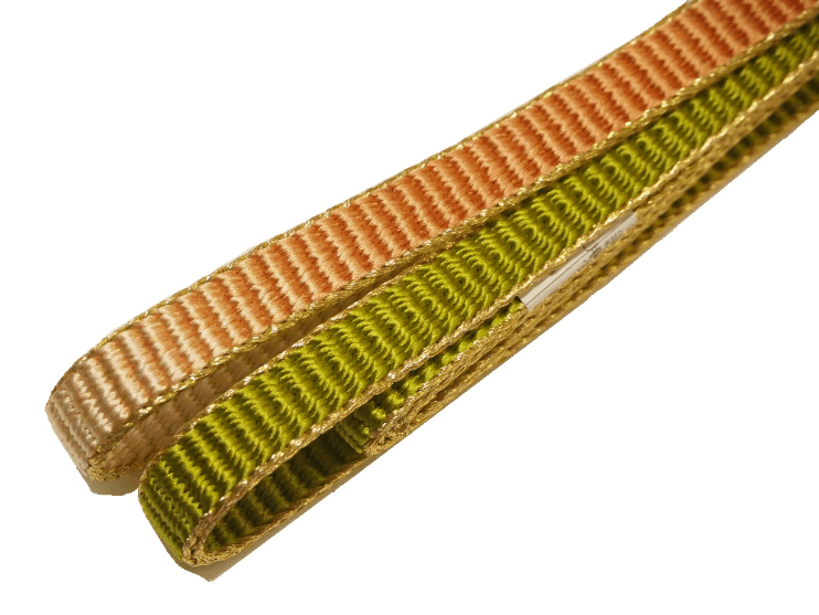 ・長尺正絹帯締め「抹茶色の地にサーモンピンク色のぼかし(金色の縁取り)」
