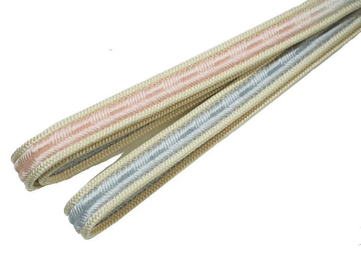 ・長尺正絹帯締め(平組)「灰ローズ色とアイボリー色の染め分け」
