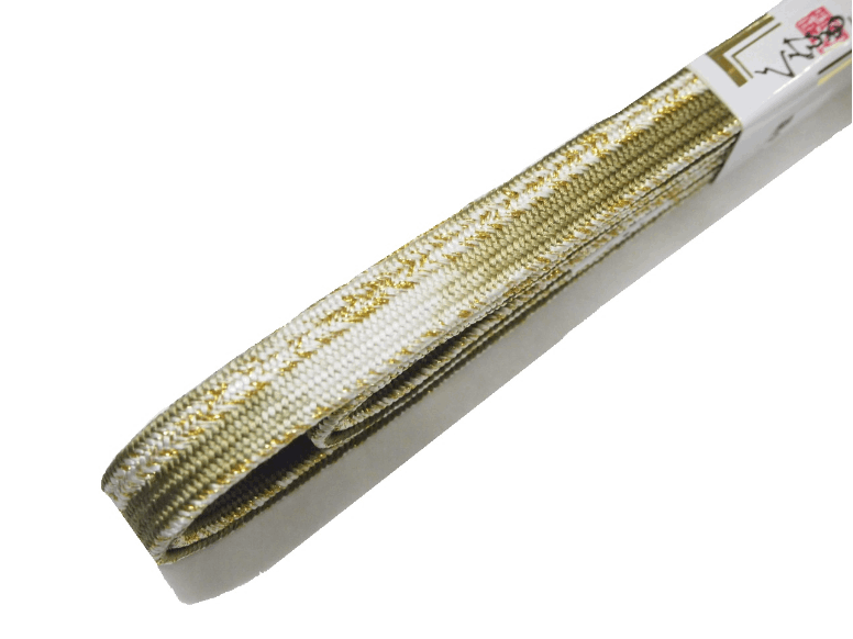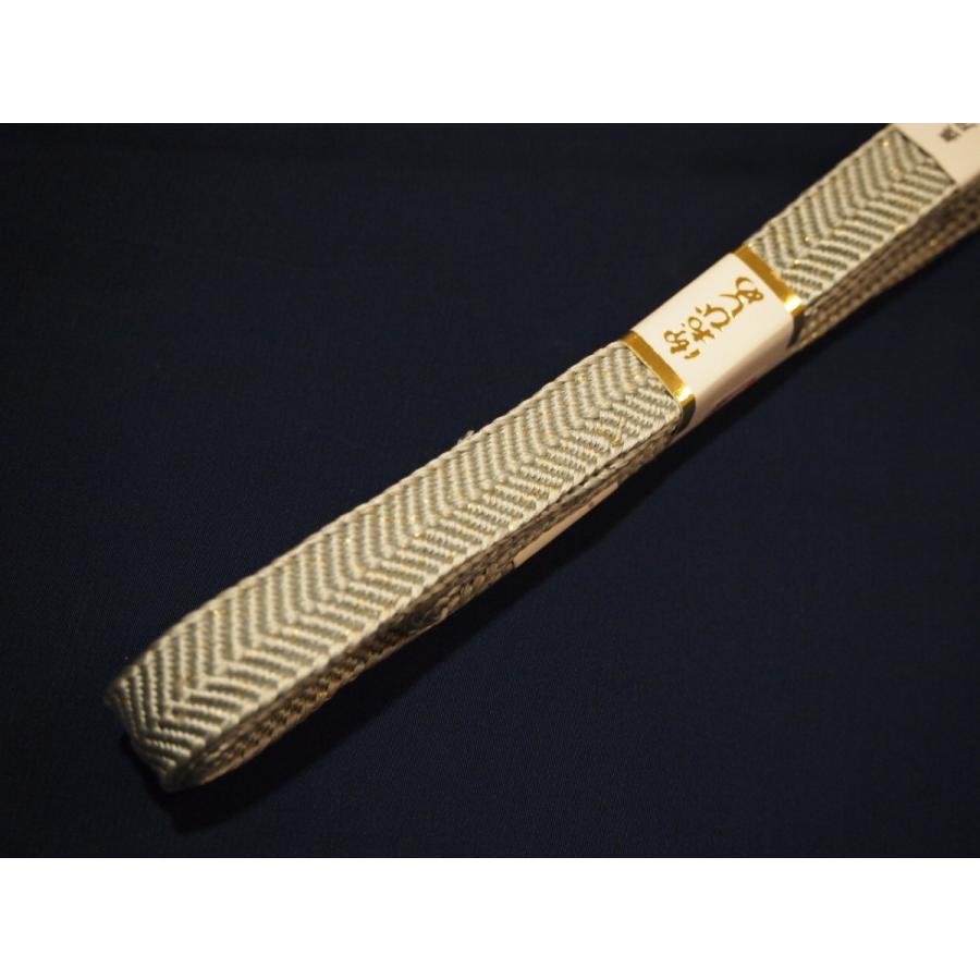 ・長尺正絹帯締め(畝打組)「アイボリー色の地に中央に白色と墨色」