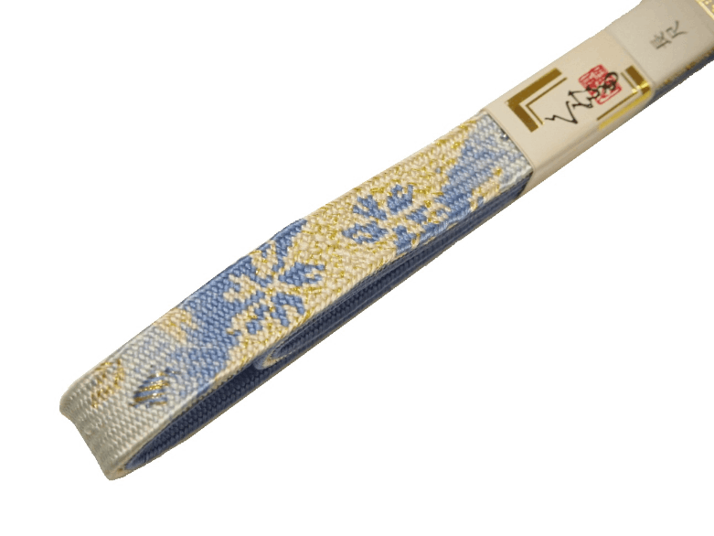 ・長尺正絹帯締め(平組)「薄青色の地にぼかしと金糸の桜模様」