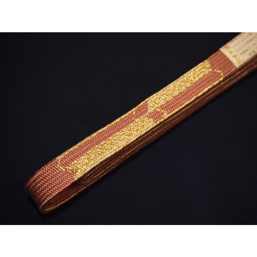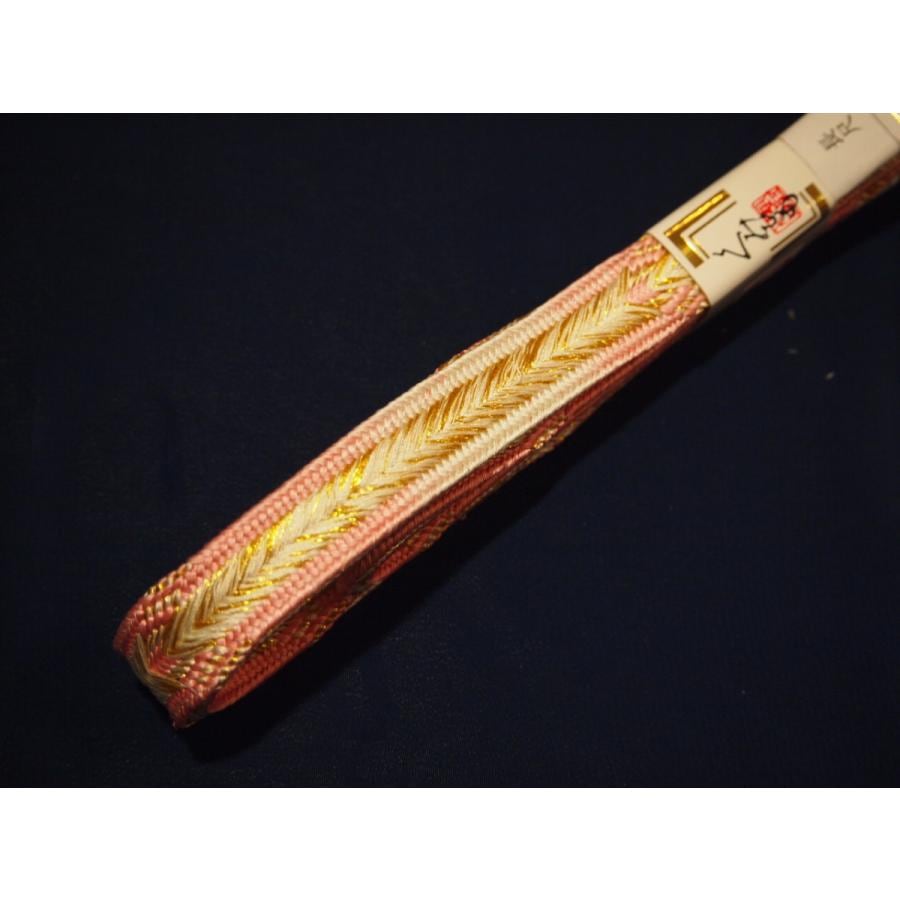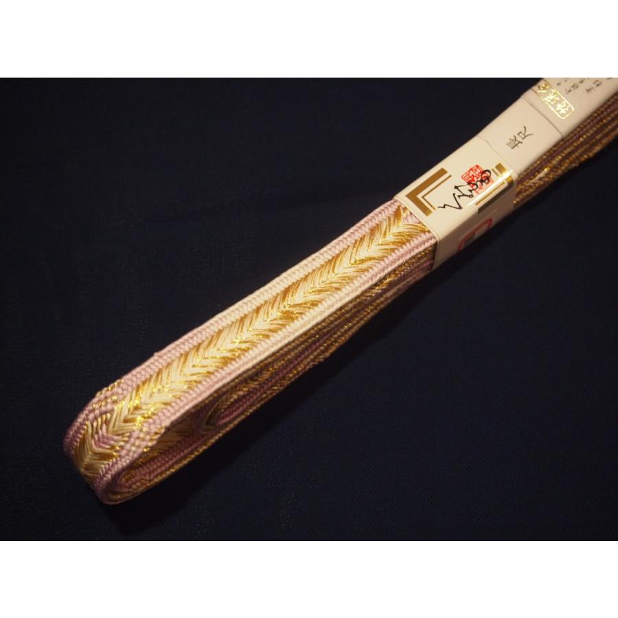 ・長尺正絹帯締め(平組)「ローズ色の地に金糸(矢羽根模様)」