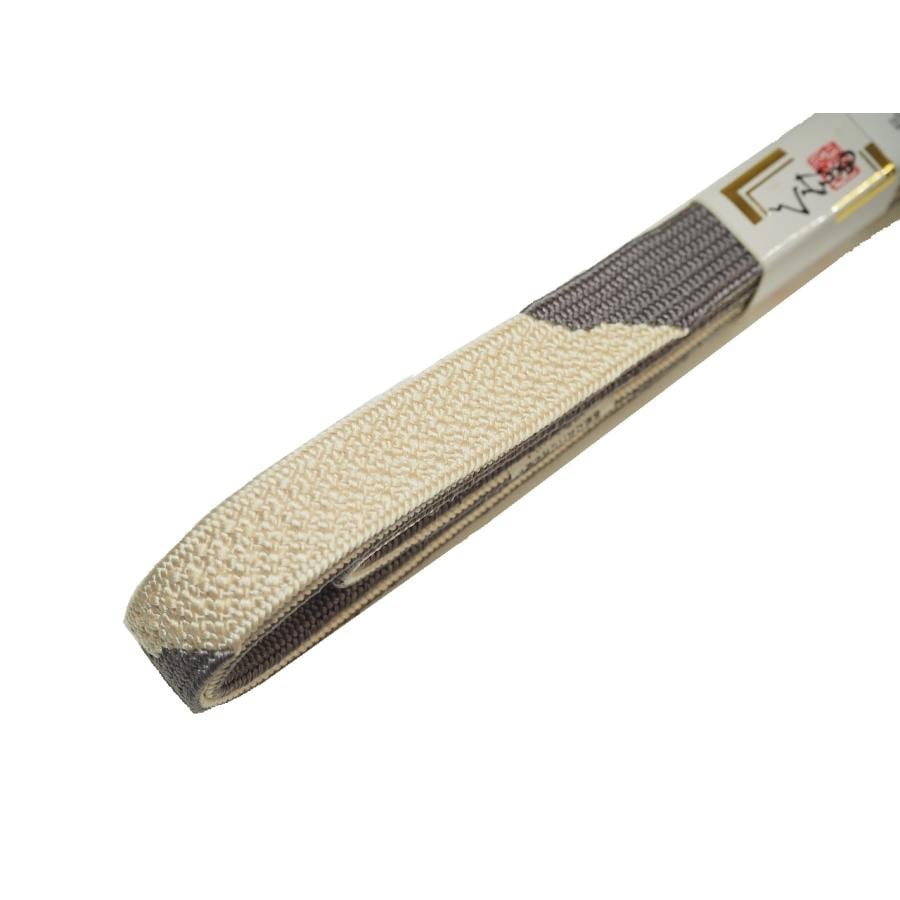 ・長尺正絹帯締め(平組)「グレー色の地にアイボリー色の模様」