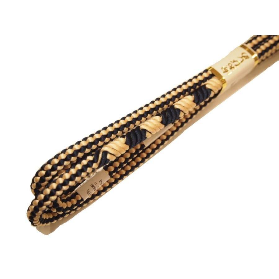 ・長尺正絹帯締め「黒色、グレー色、茶色の地に黒色とベージュ色の縁取り」