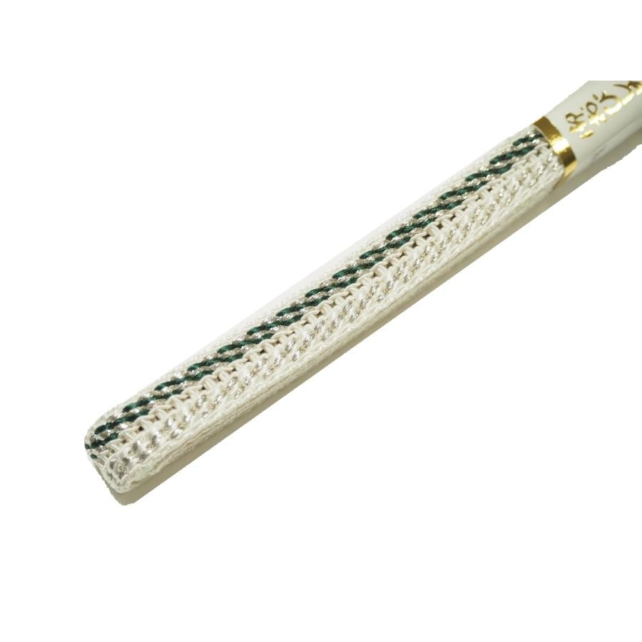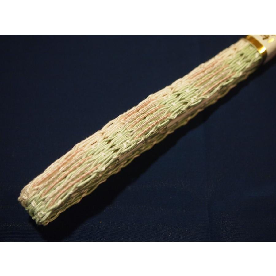 ・夏物正絹帯締め(変わり平組)「白色の地に片端に深緑色の模様」