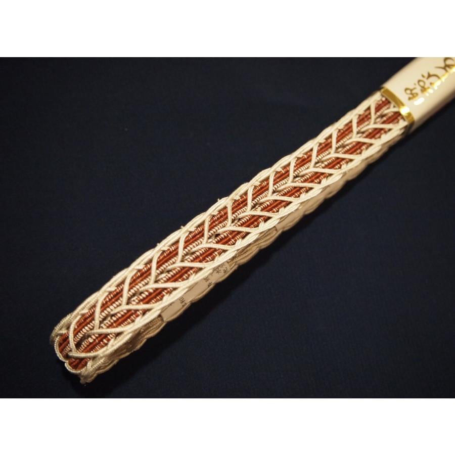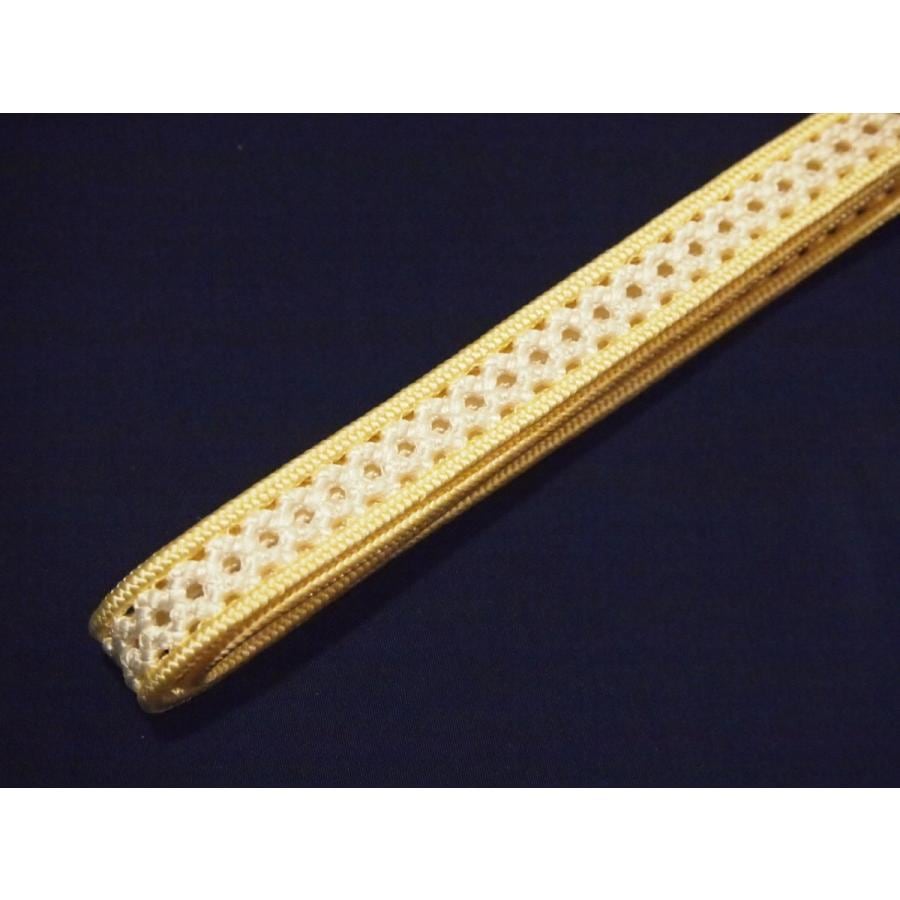 ・夏物正絹帯締め(変わり平組)「白色の地にクリーム色の縁取り」