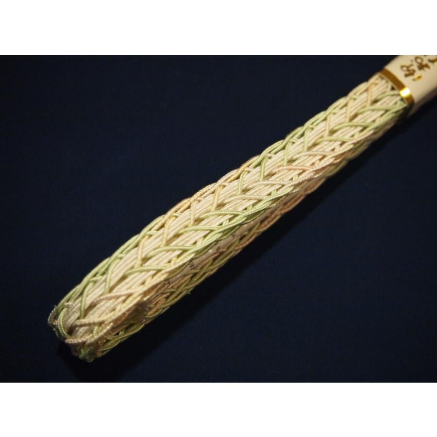 ・夏物正絹帯締め(変わり平組)「薄抹茶色の地に白色の縁取り」