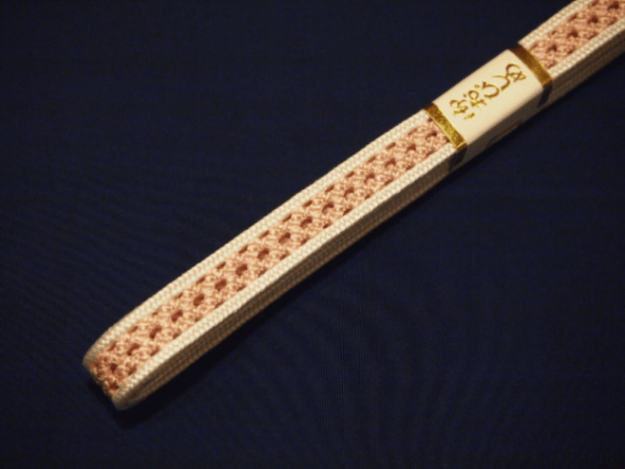 ・夏物正絹帯締め(変わり平組)「淡いピンク色の地に白色の縁取り」