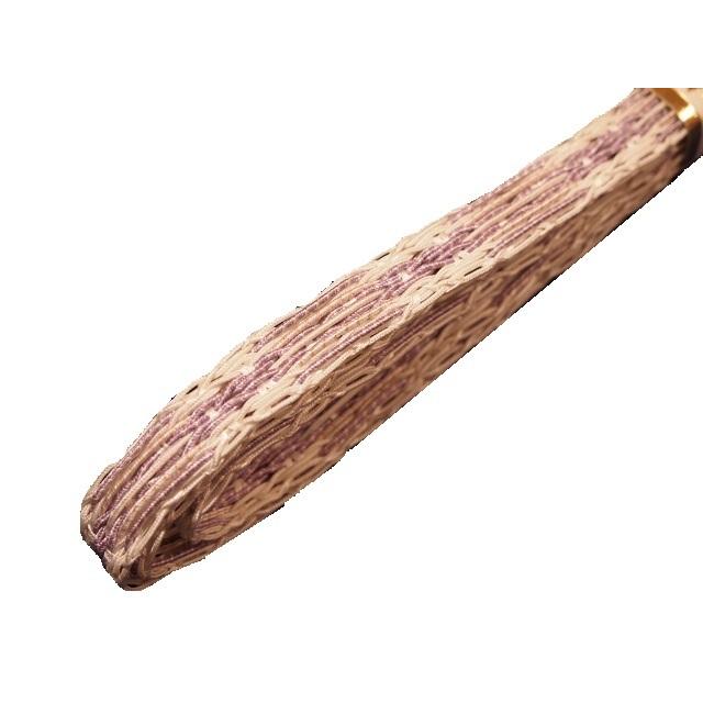 ・夏物正絹帯締め(変わり平組)「淡いピンク色の地に赤茶色と銀色の縁取り」