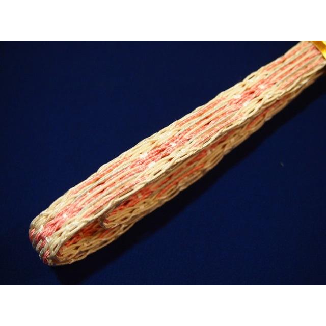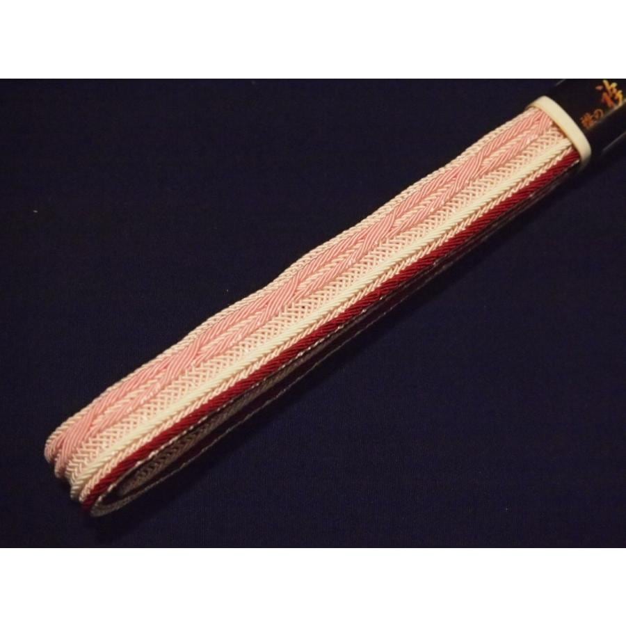 ・夏物正絹帯締め「薄ピンク色の地にエンジ色とピンク色のライン」