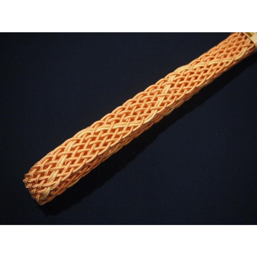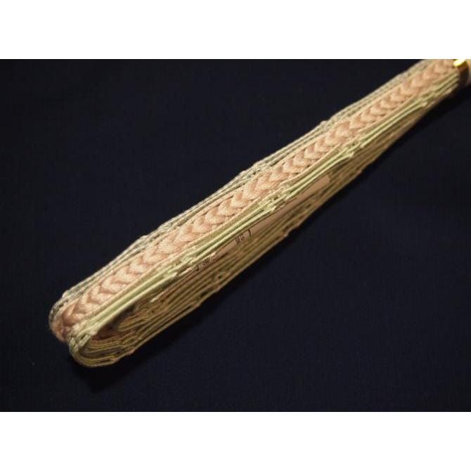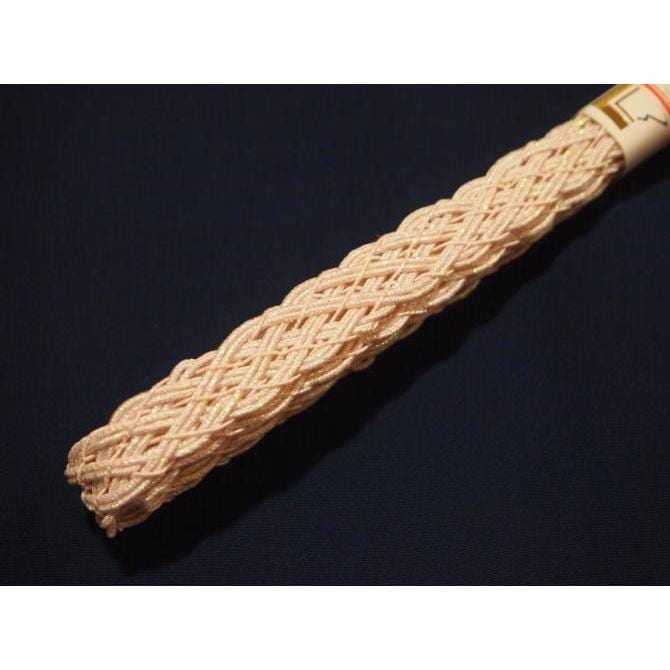 ・夏物正絹帯締め(レース)「サーモンピンク色に薄クリーム色のライン」