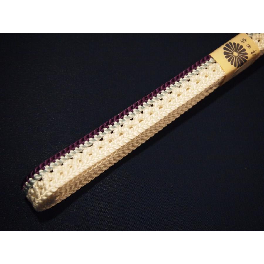 ・夏物正絹帯締め(変わり平組)「白色の地に片端に紫色の模様」