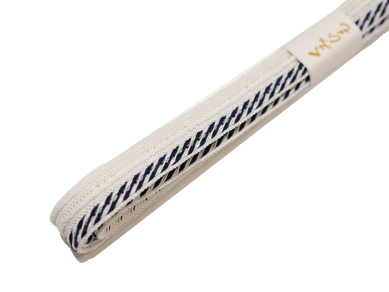 ・夏物正絹帯締め(変わり平組)「白色の地に片端に紺色の模様」