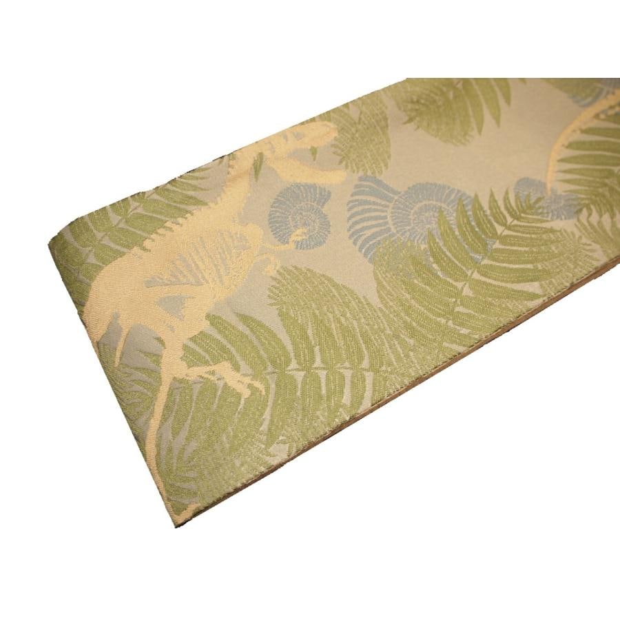 正絹博多織半幅帯「グレー色の地に麻の葉模様と金茶色の矢羽根風模様」