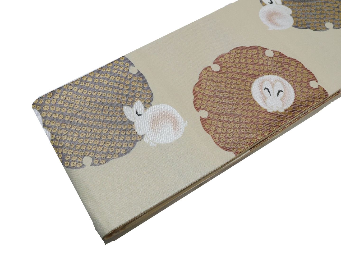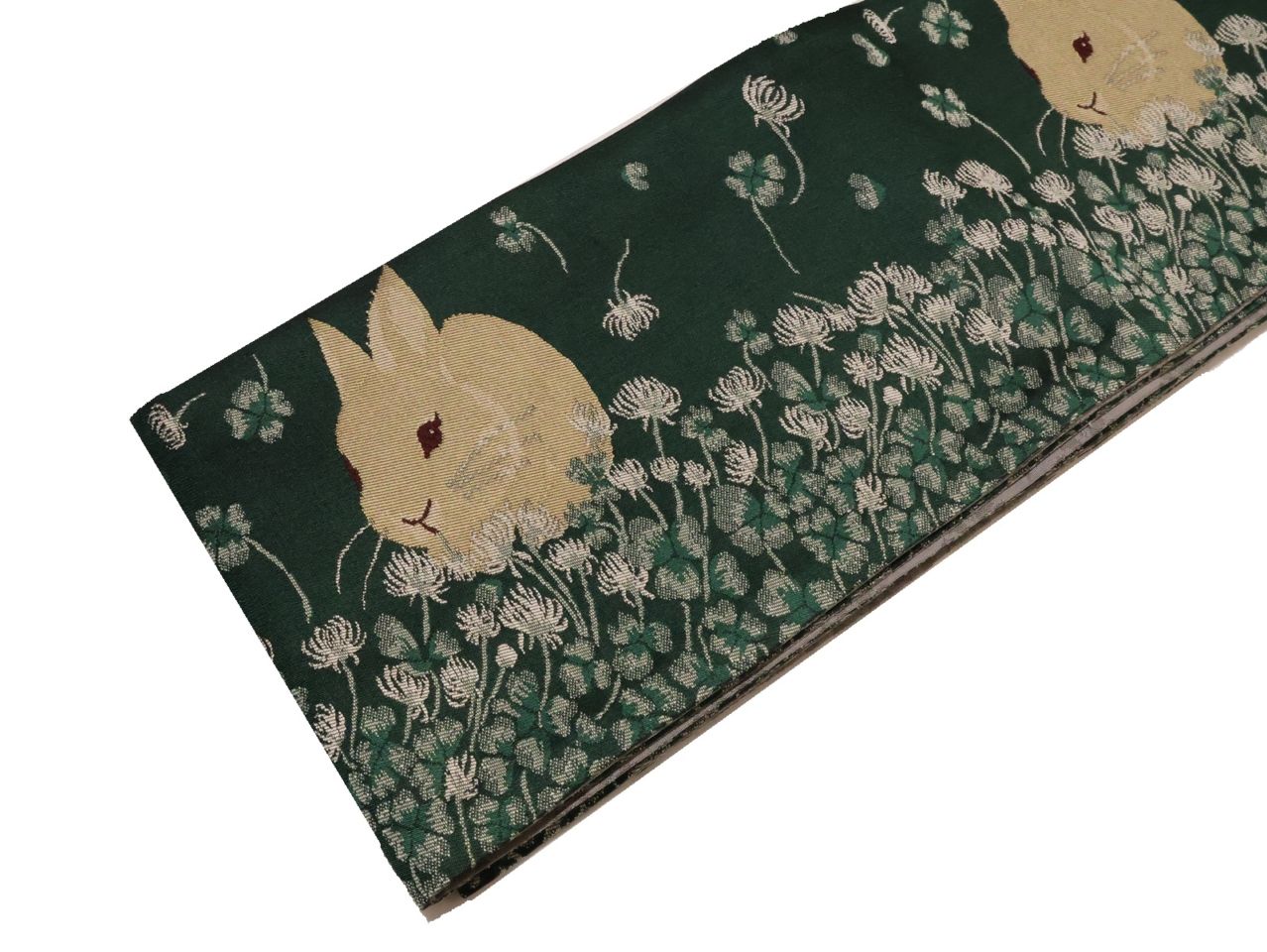ポリエステル半幅帯「グレー色の地に濃いグレー色のウサギの柄」