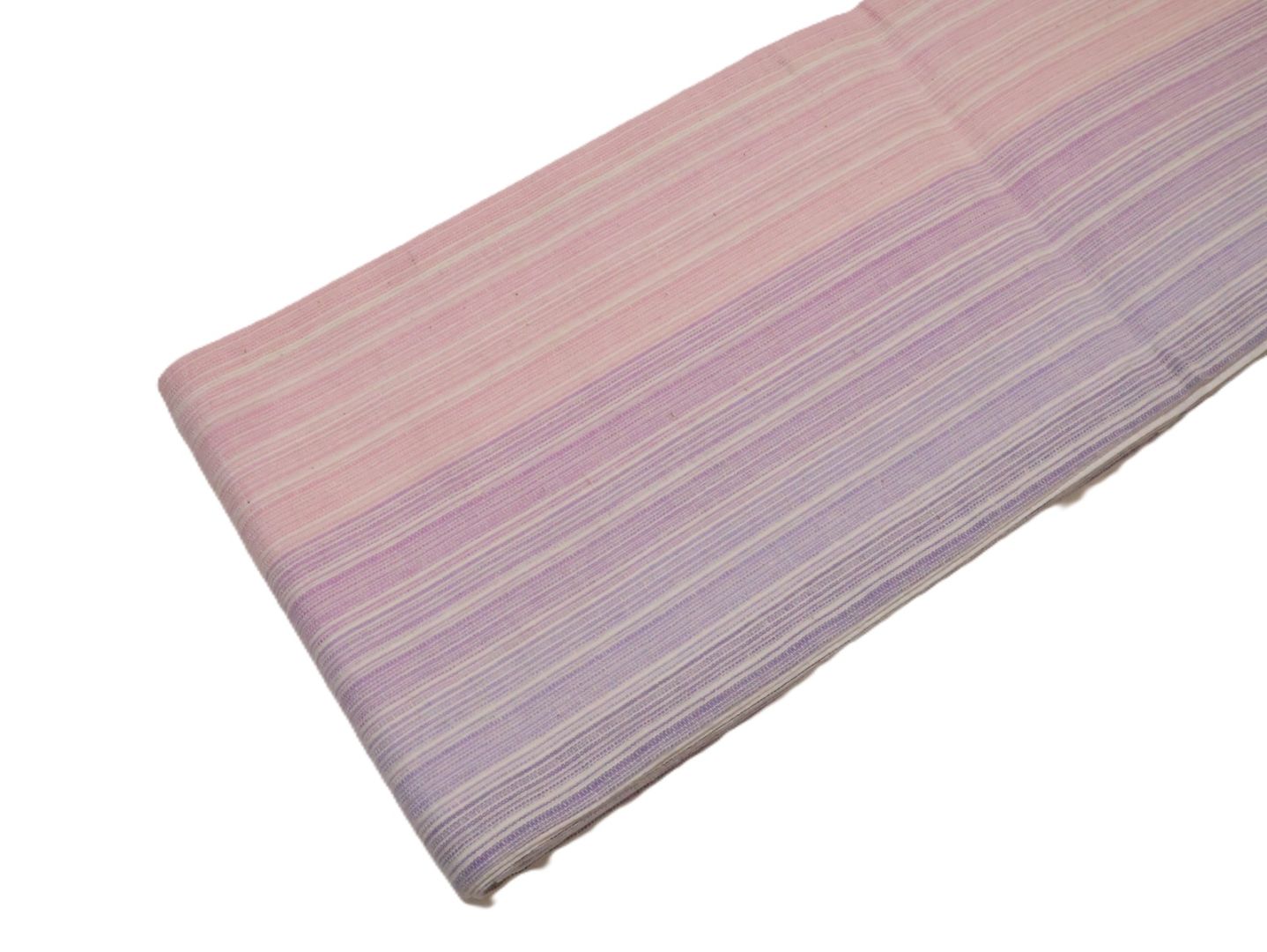 正絹博多織半幅帯「アイボリー色の地に麻の葉模様と紫色の矢羽根風模様」