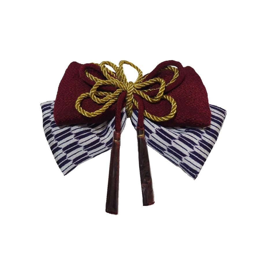 リボン髪飾り「(上)紫色の地に金の飾り紐(下)紫色の地に梅の柄」