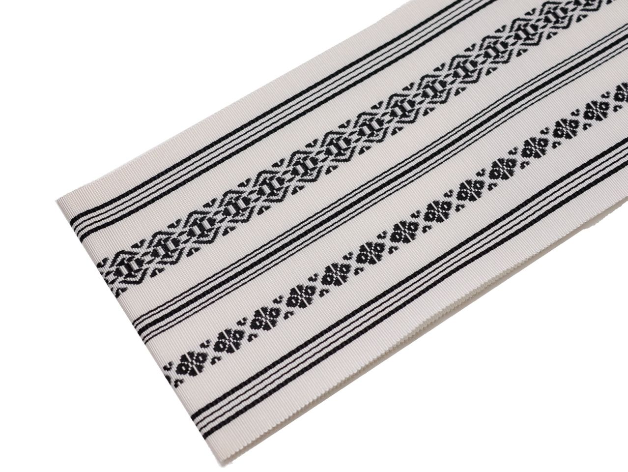 柄物帯板「アイボリー色の地にこげ茶色と灰緑色の市松風模様」ベルトなし