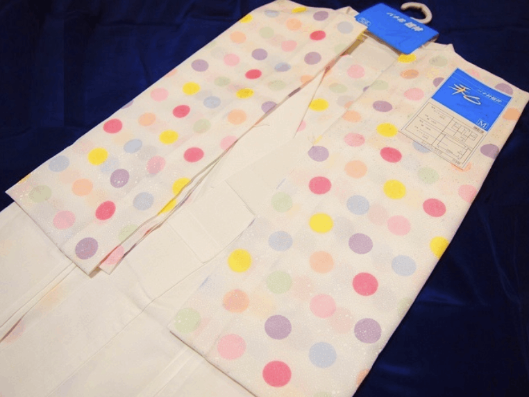 【受注生産】「袖丈49㎝」ファスナー衿半襦袢「白色の地に水玉(№50)」Mサイズ