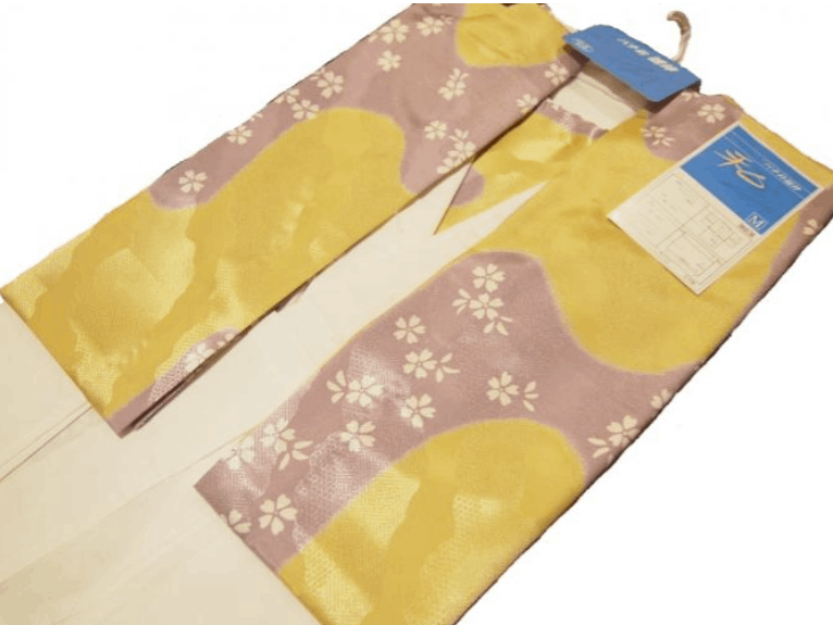 【受注生産】「袖丈49㎝」ファスナー衿半襦袢「黄色とグレー色の道長(№13)」Mサイズ