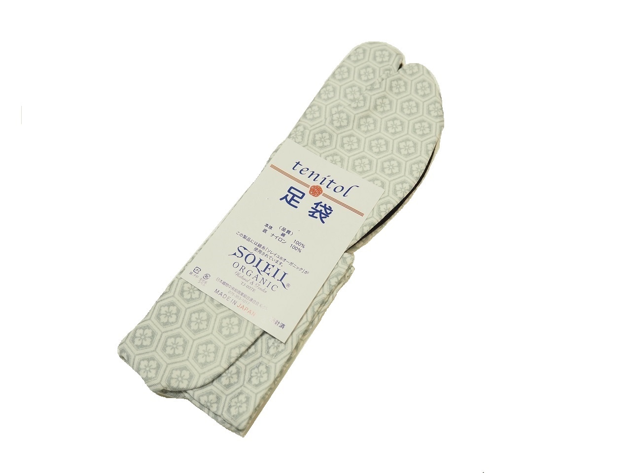 「コハゼなし」柄物ストレッチ足袋「薄ブルーグレー色の地に亀甲模様」