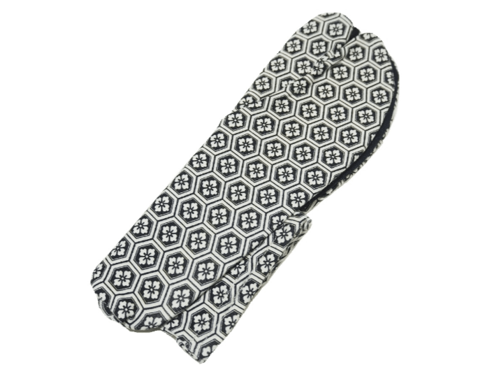 「コハゼなし」柄物ストレッチ足袋「黒色の地に灰白色の乱菊模様」
