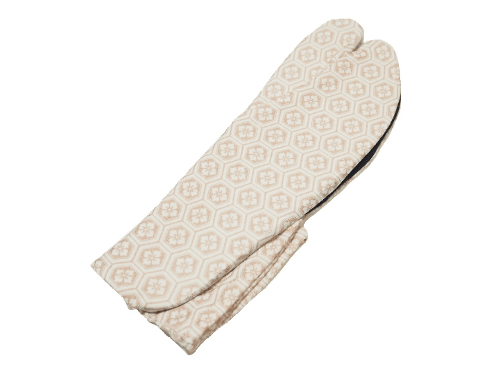 「コハゼなし」柄物ストレッチ足袋「アイボリー色の地にピンク色の桜の花びら」