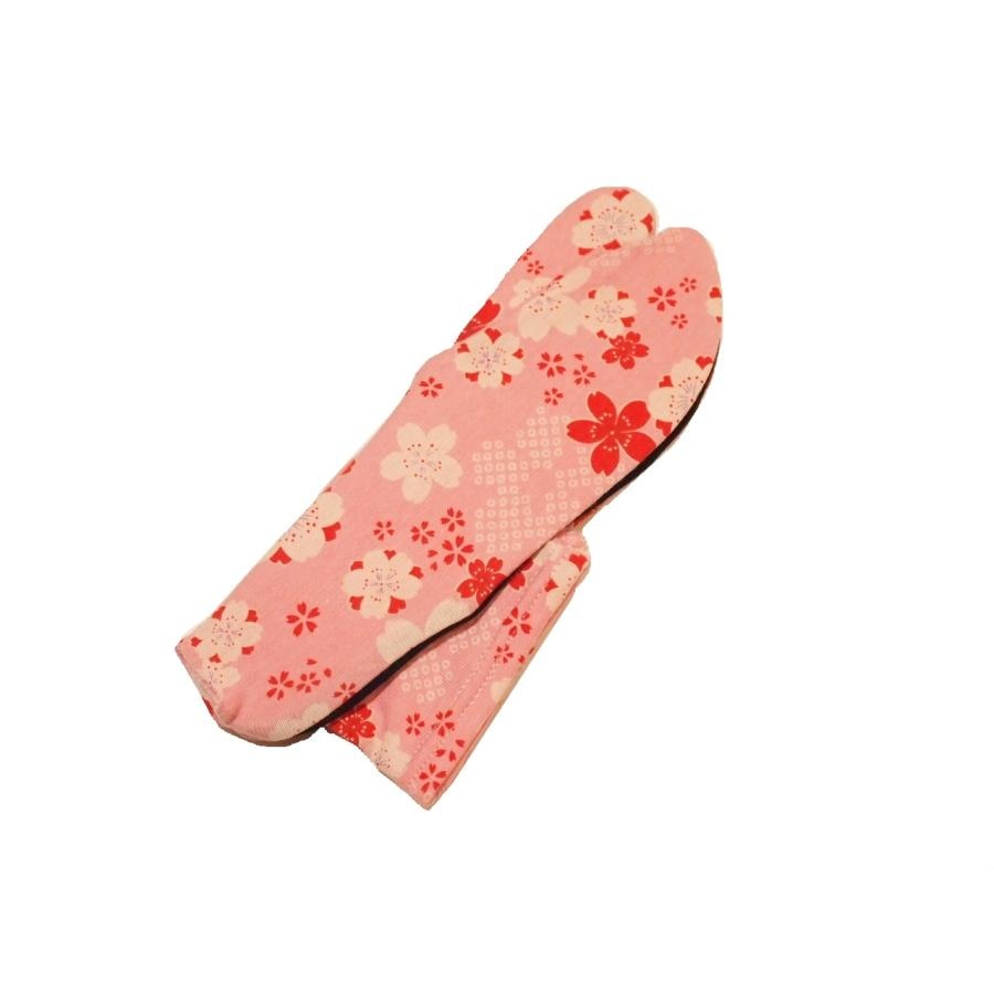 「コハゼなし」柄物ストレッチ足袋「ピンク色の地に赤色とピンク色の桜」