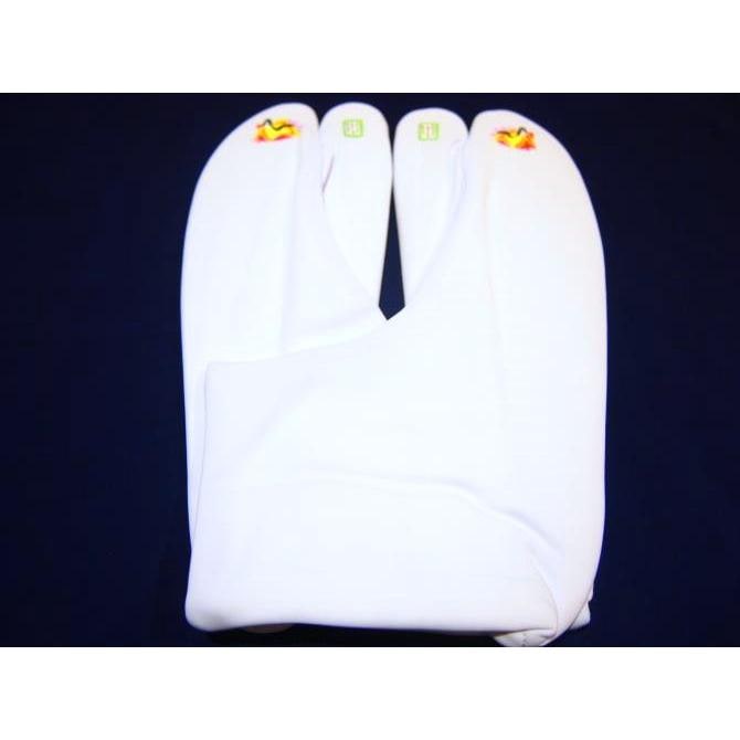 「コハゼなし」ストレッチ足袋「白色の地にオレンジ色のラインストーン付」