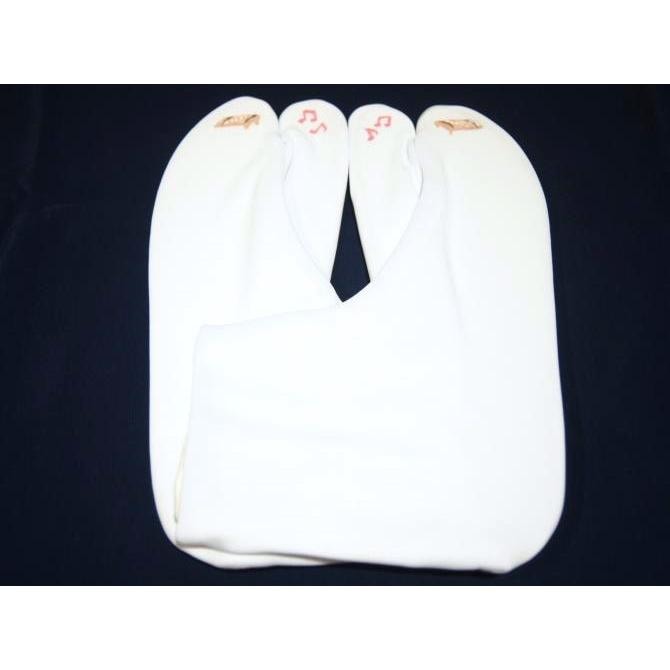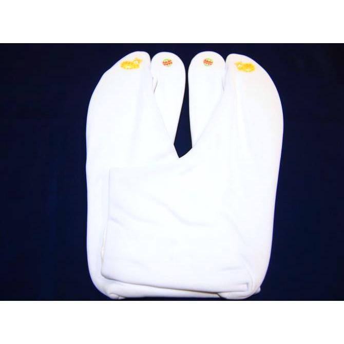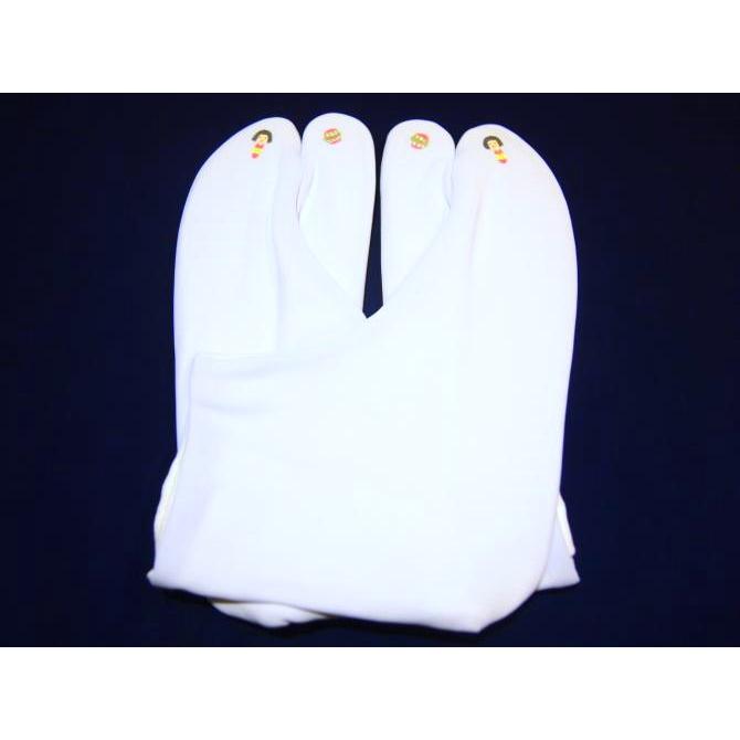 手描きストレッチ足袋「白色の地にこけしとまりの柄」LLサイズ