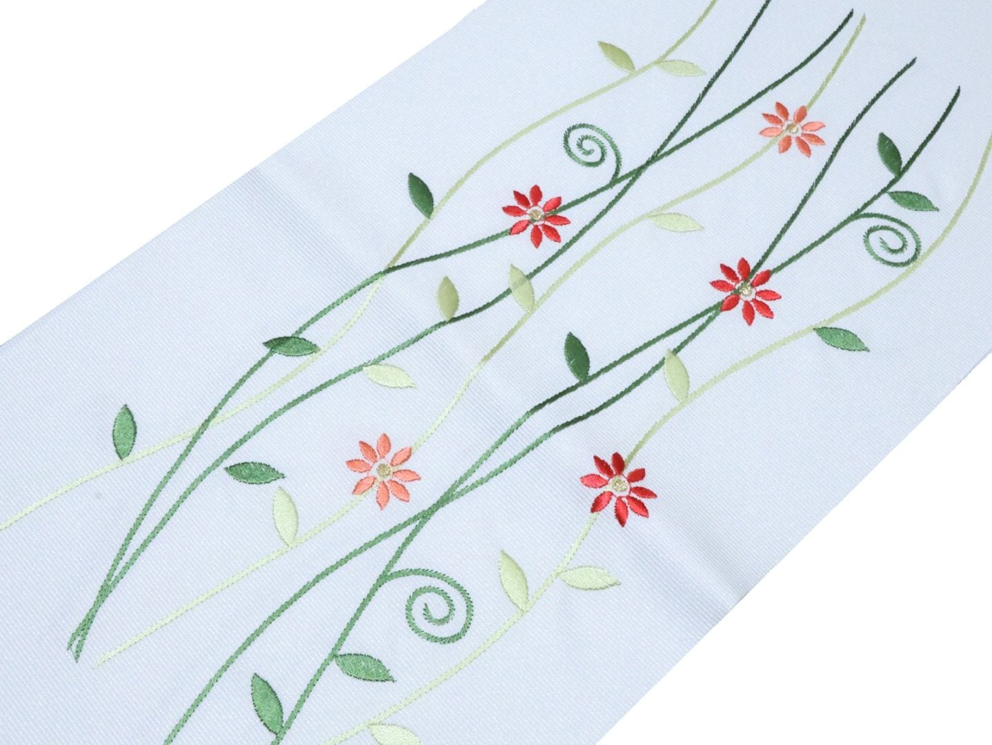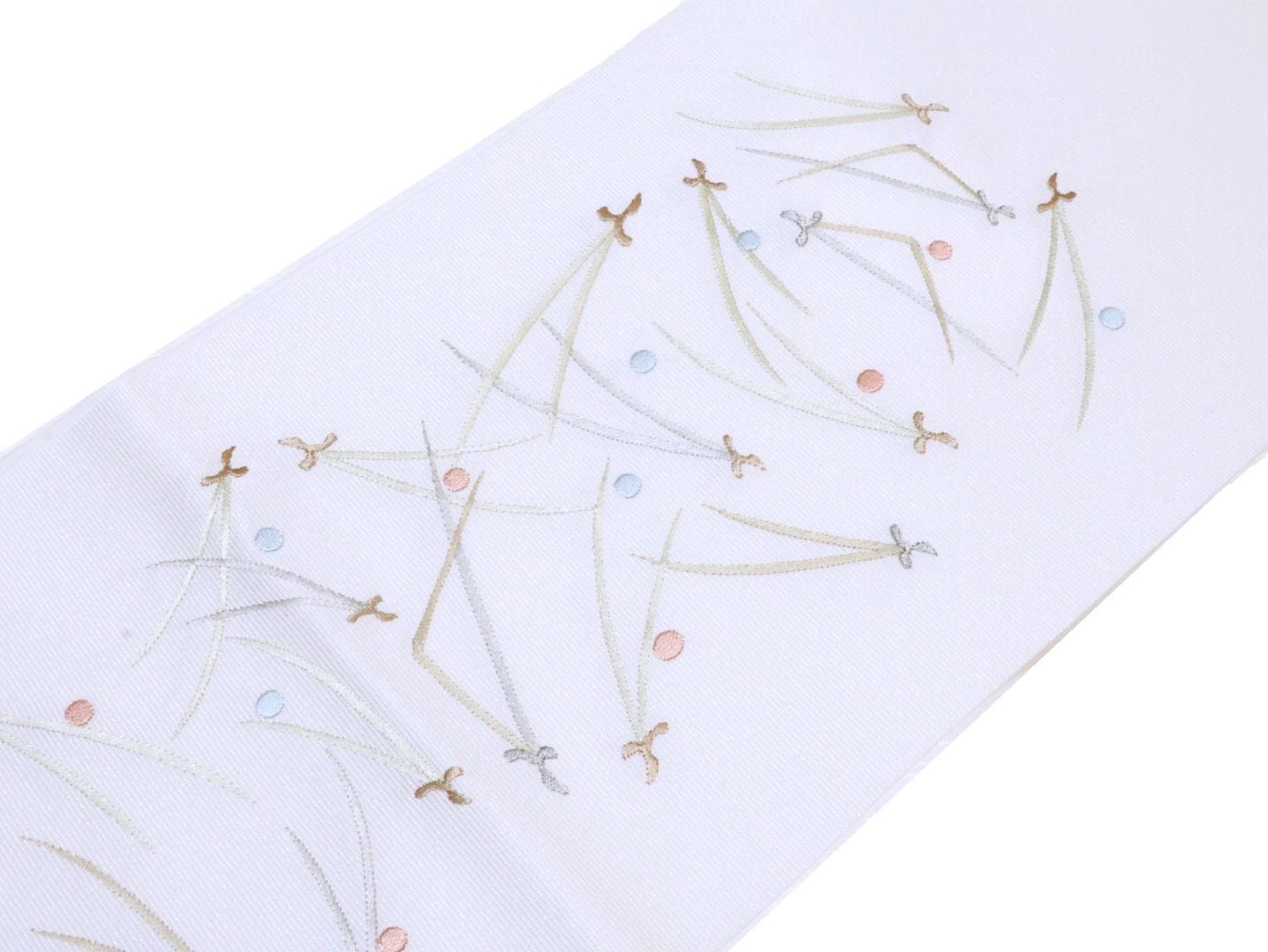 正絹刺繍半衿「白色の地に薄ベージュ色の源氏香、松、南天の刺繍」