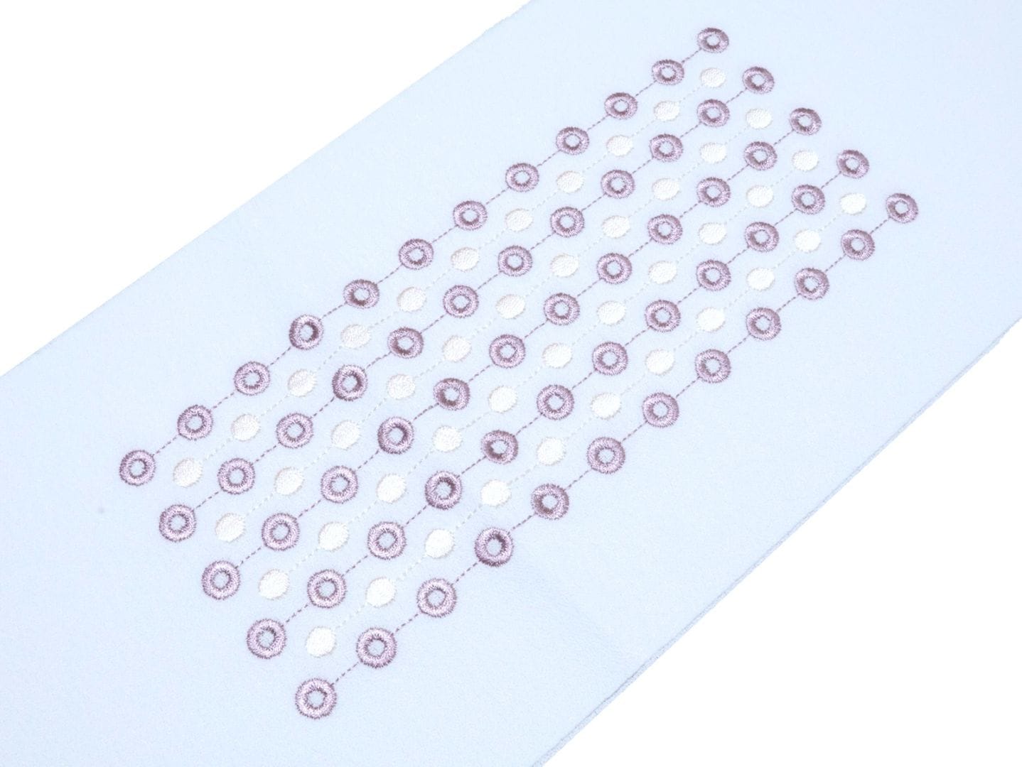 ・刺繍半衿「白色の地に濃いグレー色とピンク色のドット繋ぎ模様の刺繍」