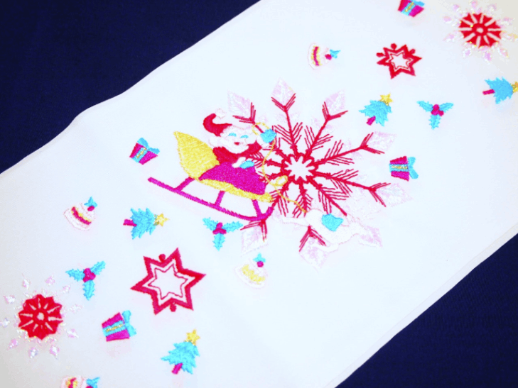 ・刺繍半衿「白色の地に赤色、銀色、白色のサンタクロースの刺繍」